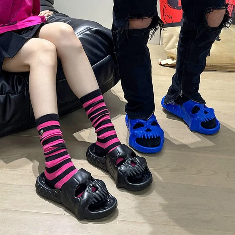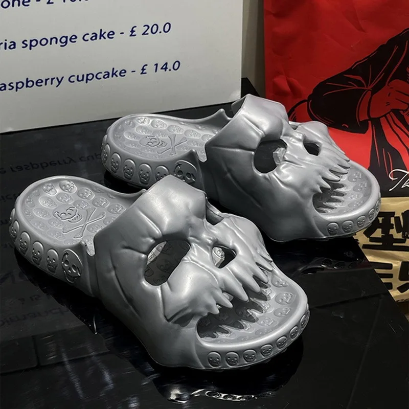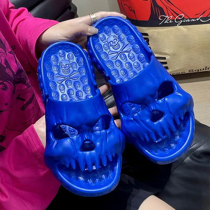 Мужские летние тапочки с индивидуальным дизайном в виде черепа, женские домашние сандалии, Нескользящие босоножки для ванной комнаты, 2023