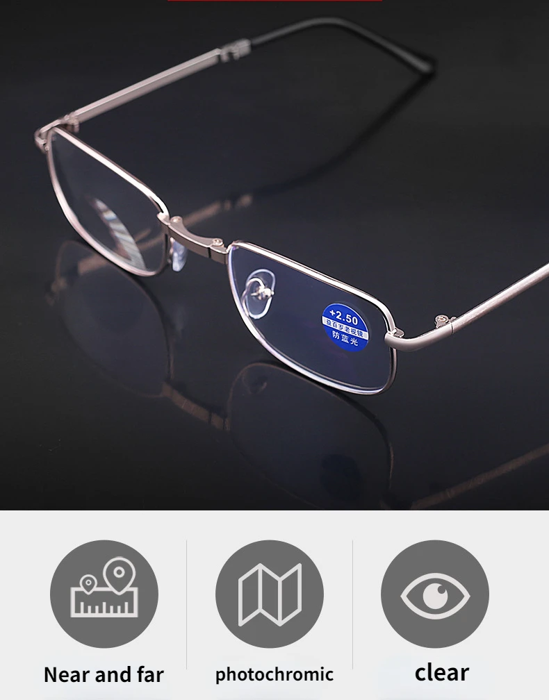 Мужские очки для чтения с защитой от синего света, новый внешний вид, дальний и Ближний светильник, легкий вес, Складная портативная оправа для очков для пожилых людей
