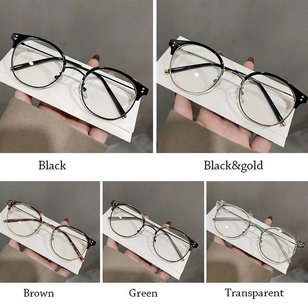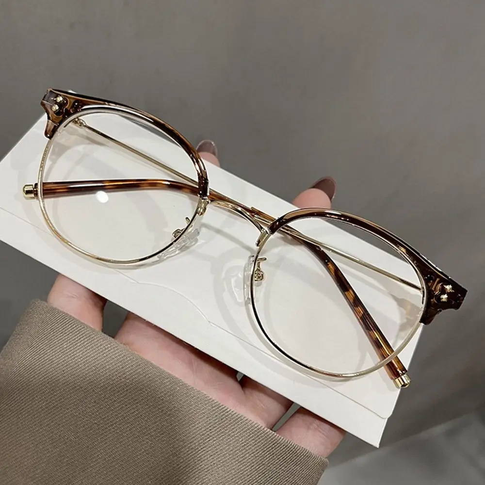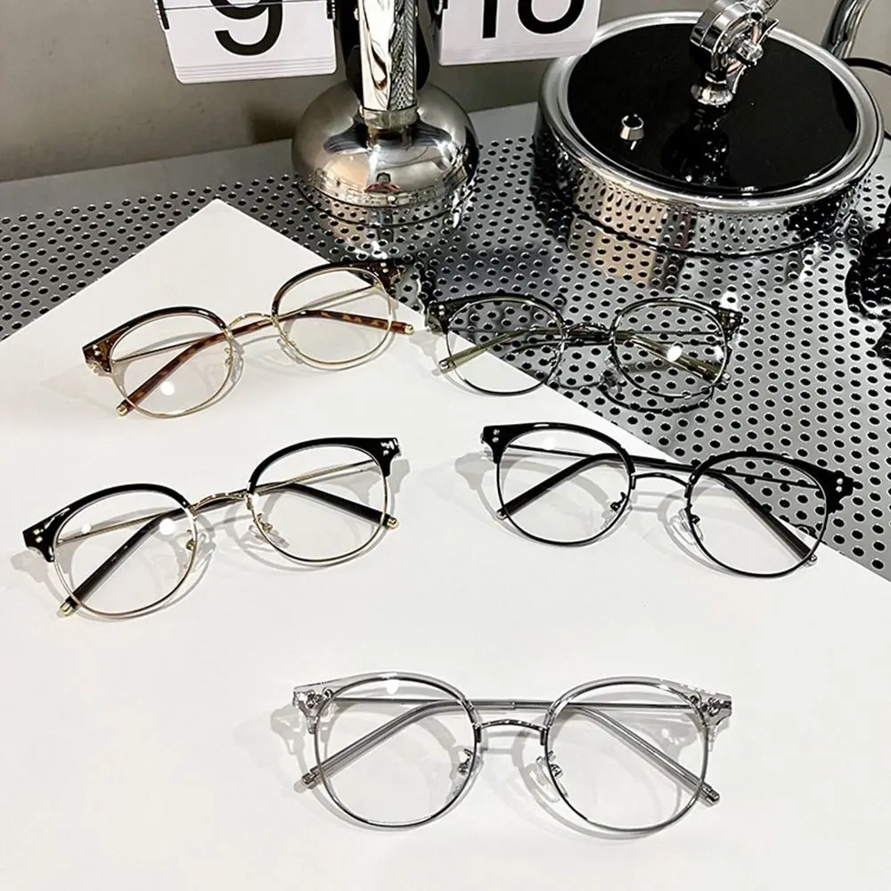 Мужские прозрачные полуоправы круглые очки Оптическая оправа металлические анти Синие лучи