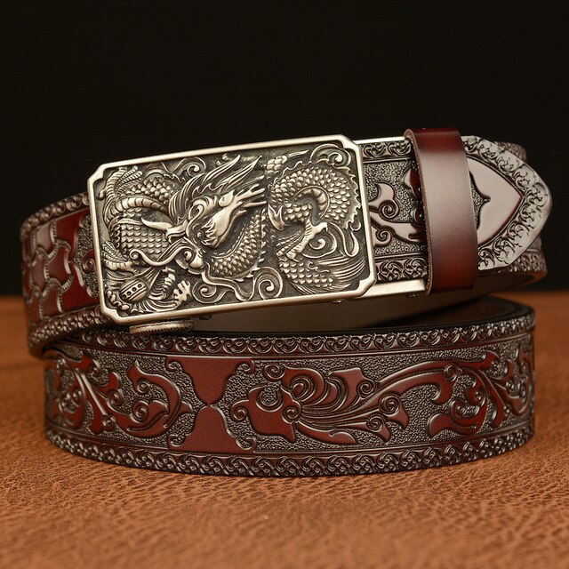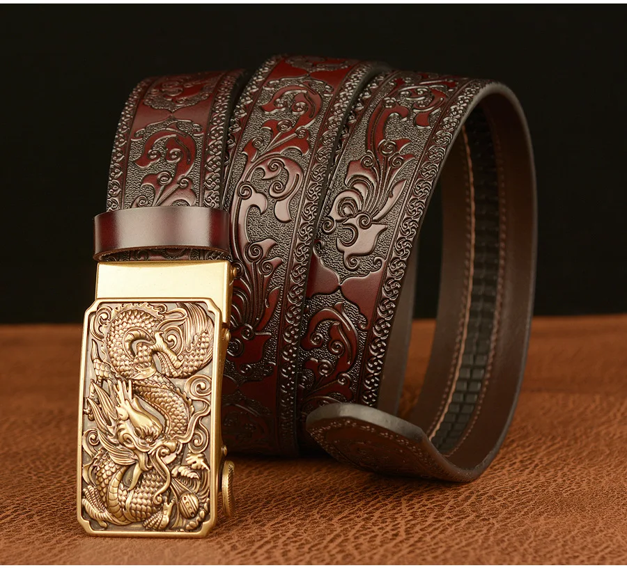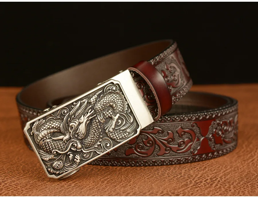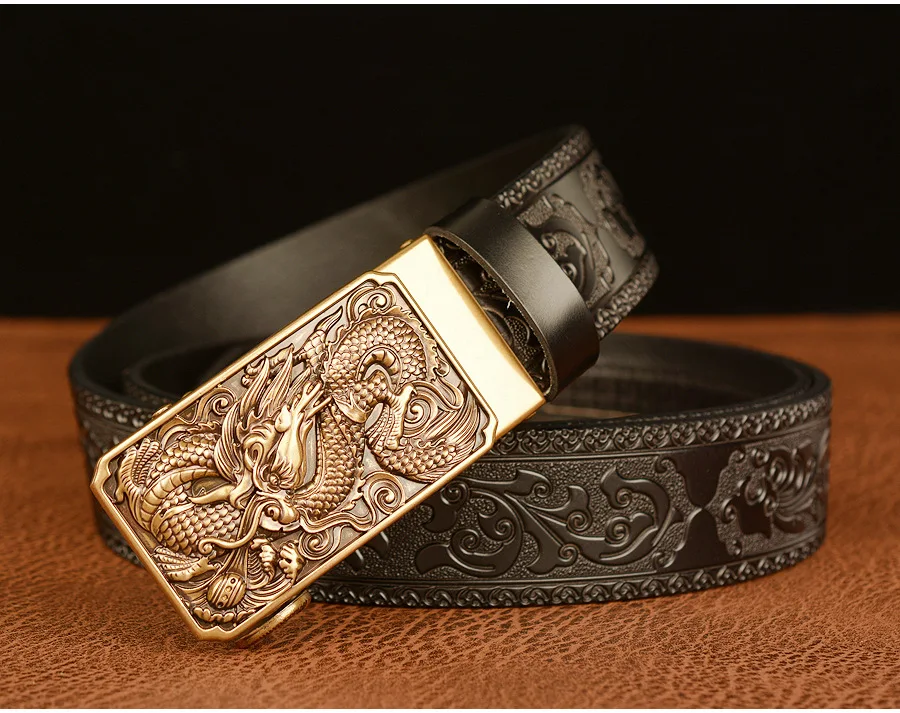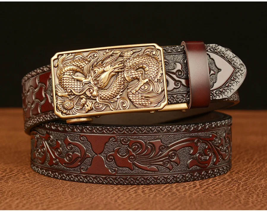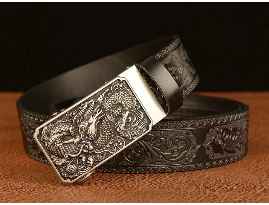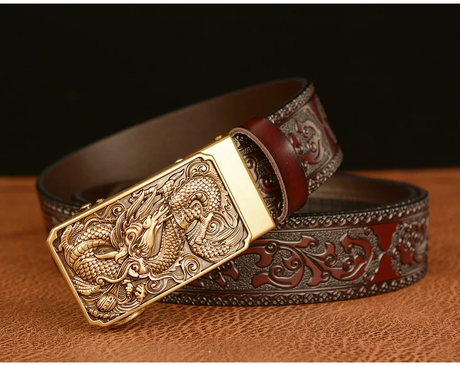 Мужские роскошные брендовые ремни с рисунком дракона, автоматические пряжки, ремни из натуральной кожи, мужские ремни для мужчин, модные, высококачественные, из воловьей кожи, винтажные