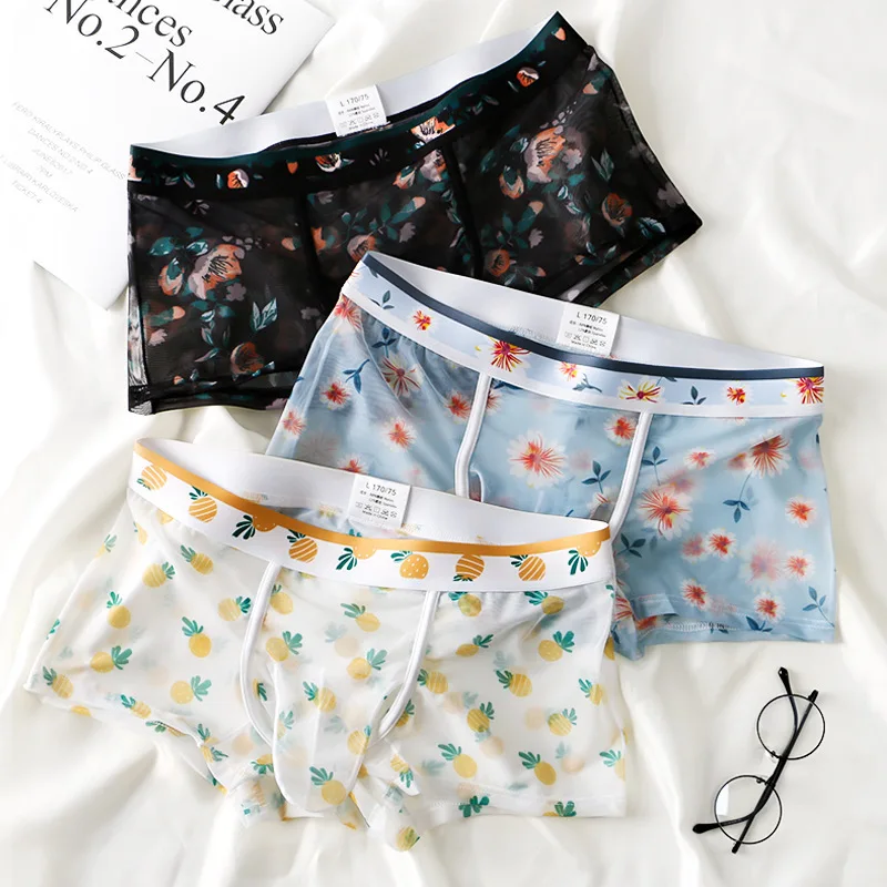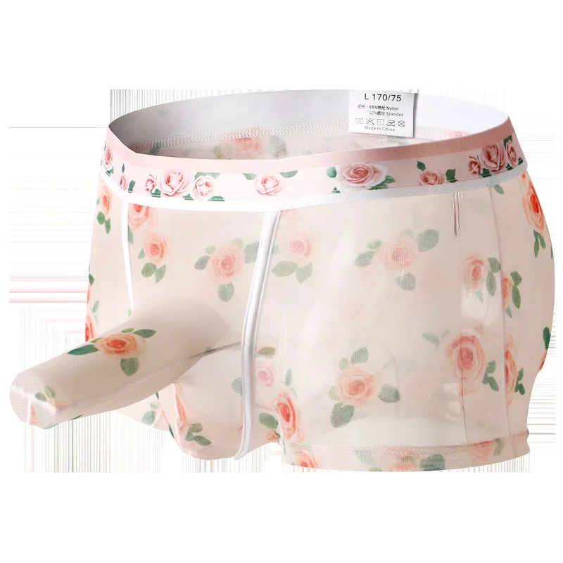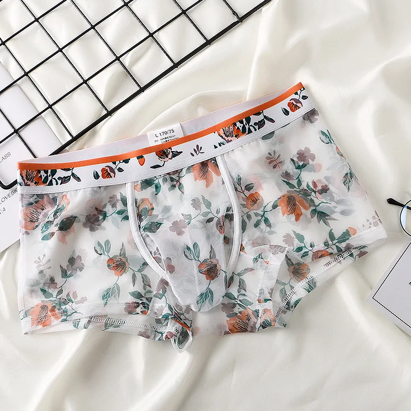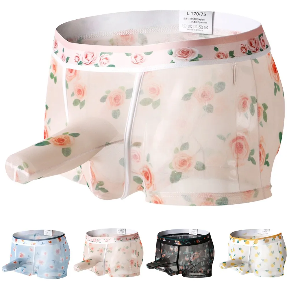 * Описание товара: Мужские трусы-боксеры с цветами, футляры для пениса, трусы, шорты, нижнее белье