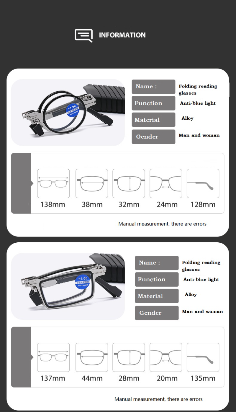 Мужские Складные очки для чтения, с диоптриями от + 1,0 до + 4,0