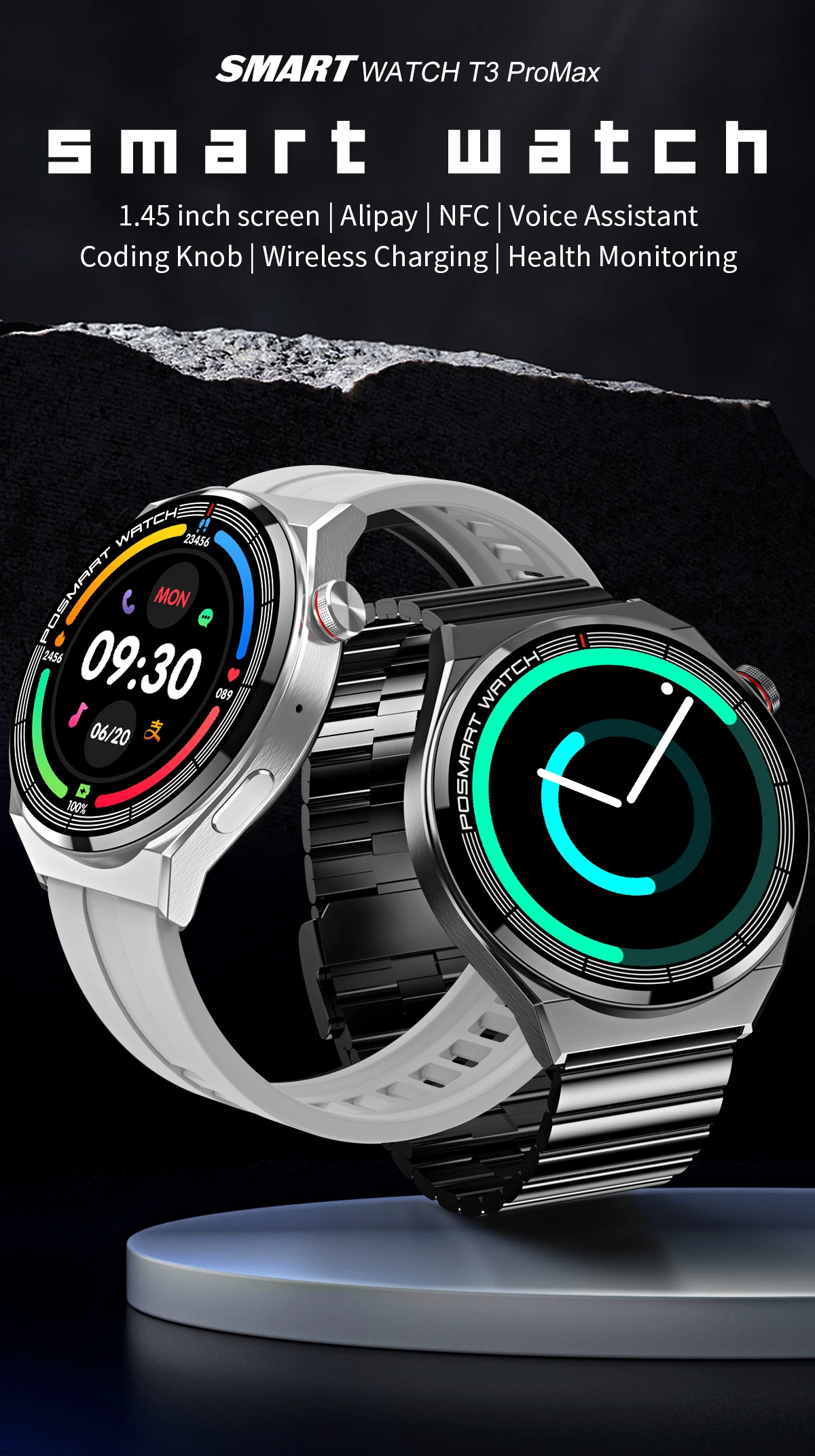Мужские смарт-часы T3 PRO MAX, экран 1,5 дюйма, HD, Bluetooth, беспроводная зарядка, IP68, пульсометр
