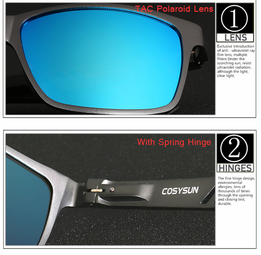 Мужские солнцезащитные очки COSYSUN, поляризованные солнцезащитные очки в квадратной металлической оправе, для вождения, рыбалки, UV400