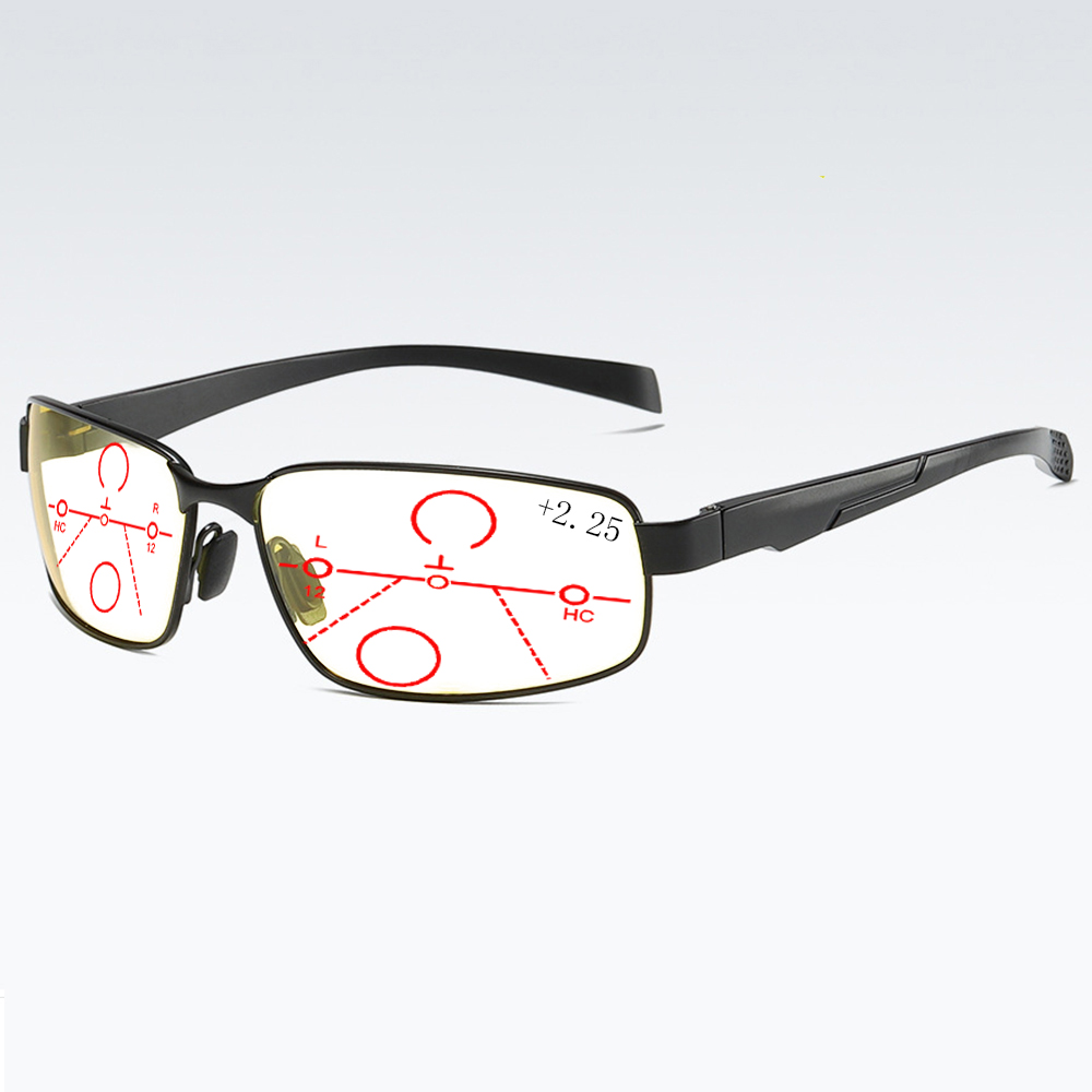Мужские ультралегкие прогрессивные Мультифокальные очки для чтения, из сплава алюминия + 0,75 + 1 + 1,25 + 1,5 + 2 + 1,75 + 2,25 + 2,5 + 2,75 до + 4