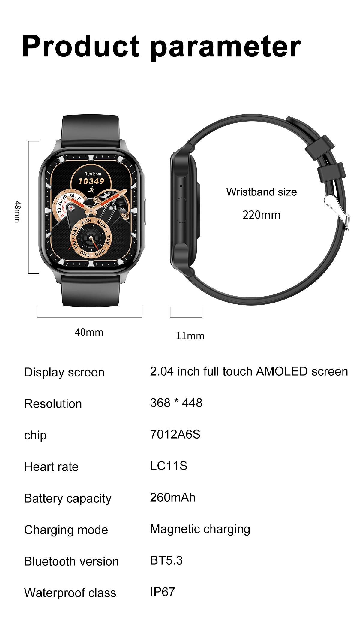 Размер экрана 2.04"AMOLED HD full screen