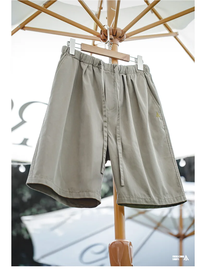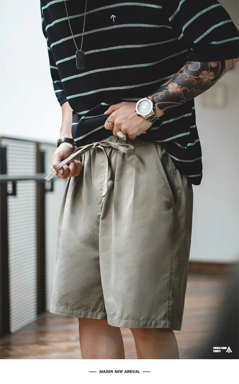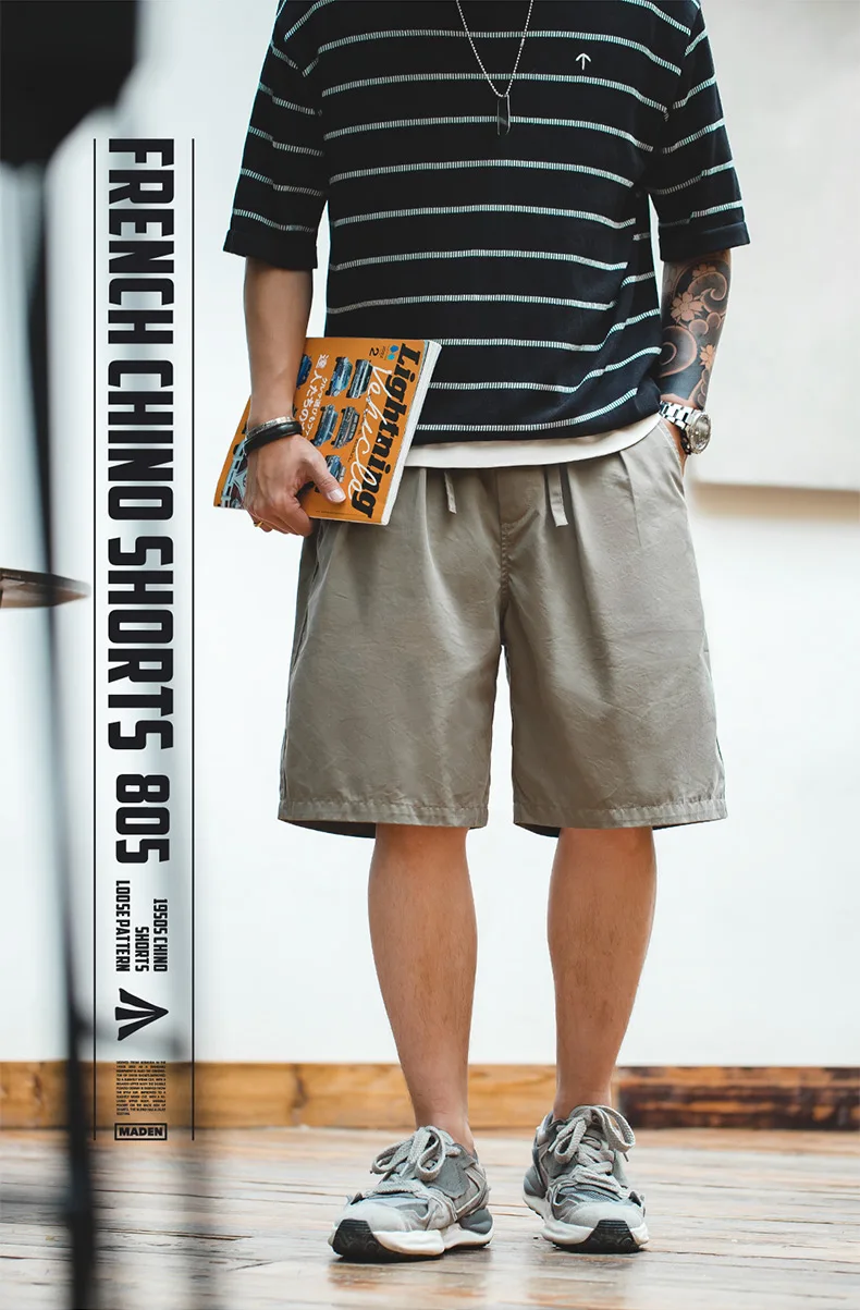 Мужские Винтажные Шорты-чино Maden, темно-синие повседневные шорты с двойной плиссировкой, на завязках, из Твила, лето 2023