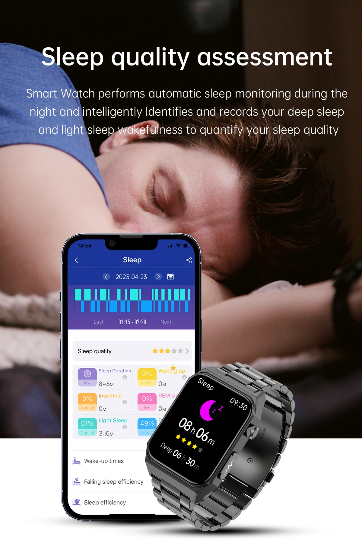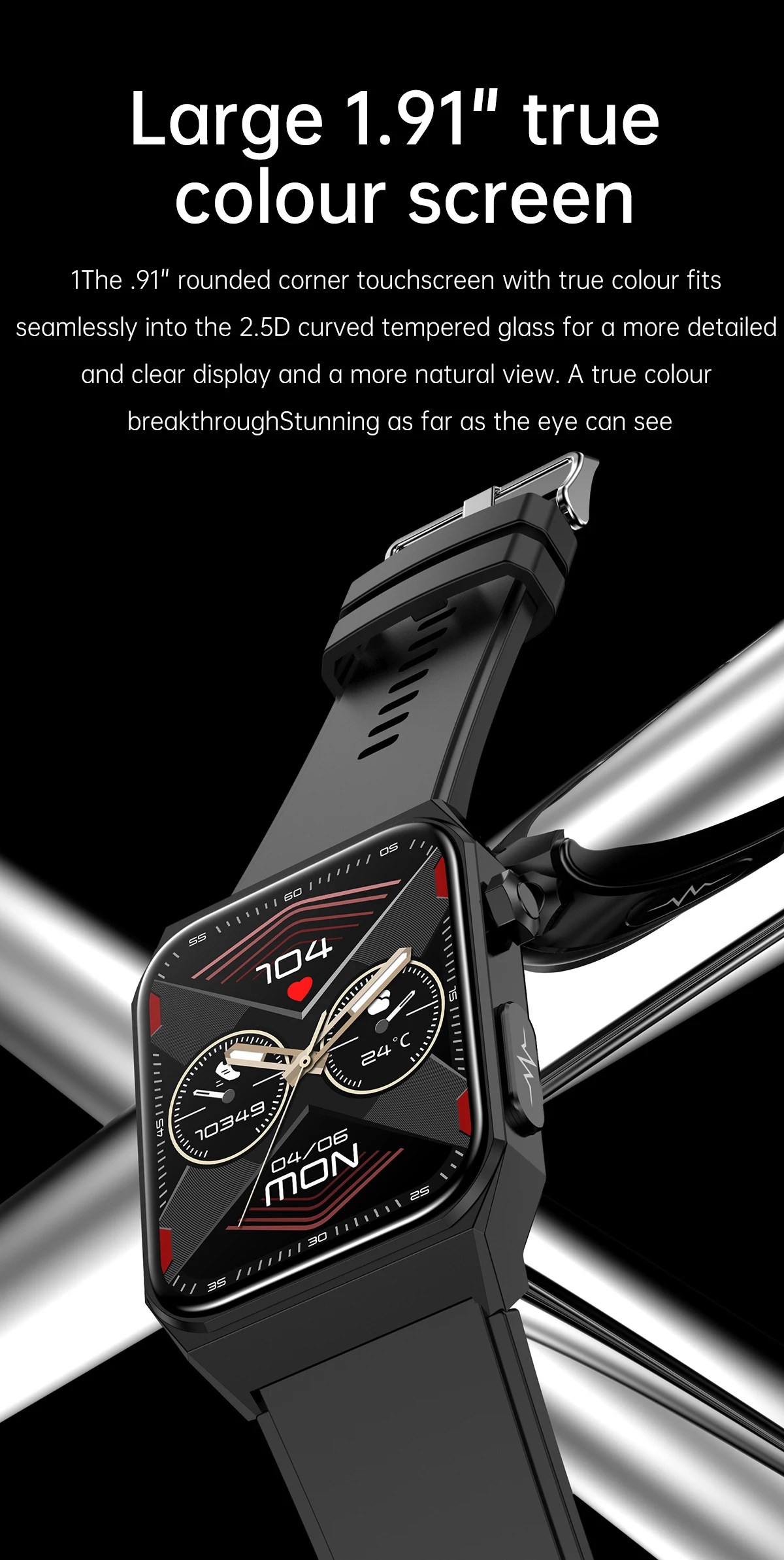 Функциональные точки «Мониторинг электрокардиограммы (высокочастотный 512 Гц), анализ индекса ВСР и сердечного здоровья, мониторинг электрокардиограммы, анализ электрокардиограммы в реальном времени, неинвазивный уровень глюкозы в крови, мониторинг температуры тела, мониторинг кислорода в крови, график рассеяния Лоренца, мониторинг сердечного ритма, Мониторинг Артериального Давления, несколько режимов упражнений, индивидуальный циферблат, Онлайн-множественный набор и запись упражнений. Мониторинг сна, напоминания о звонках и сообщений, сверхнизкое энергопотребление и длительное время автономной работы. Корпус из металлического сплава, бесшумный будильник, удаленная фотография, управление музыкой, напоминание о сидячем положении, напоминание о воде, отображение погоды, обратный отсчет, встряхивание для фотосъемки, поиск мобильного телефона, 1,91-дюймовый сенсорный экран высокой четкости.