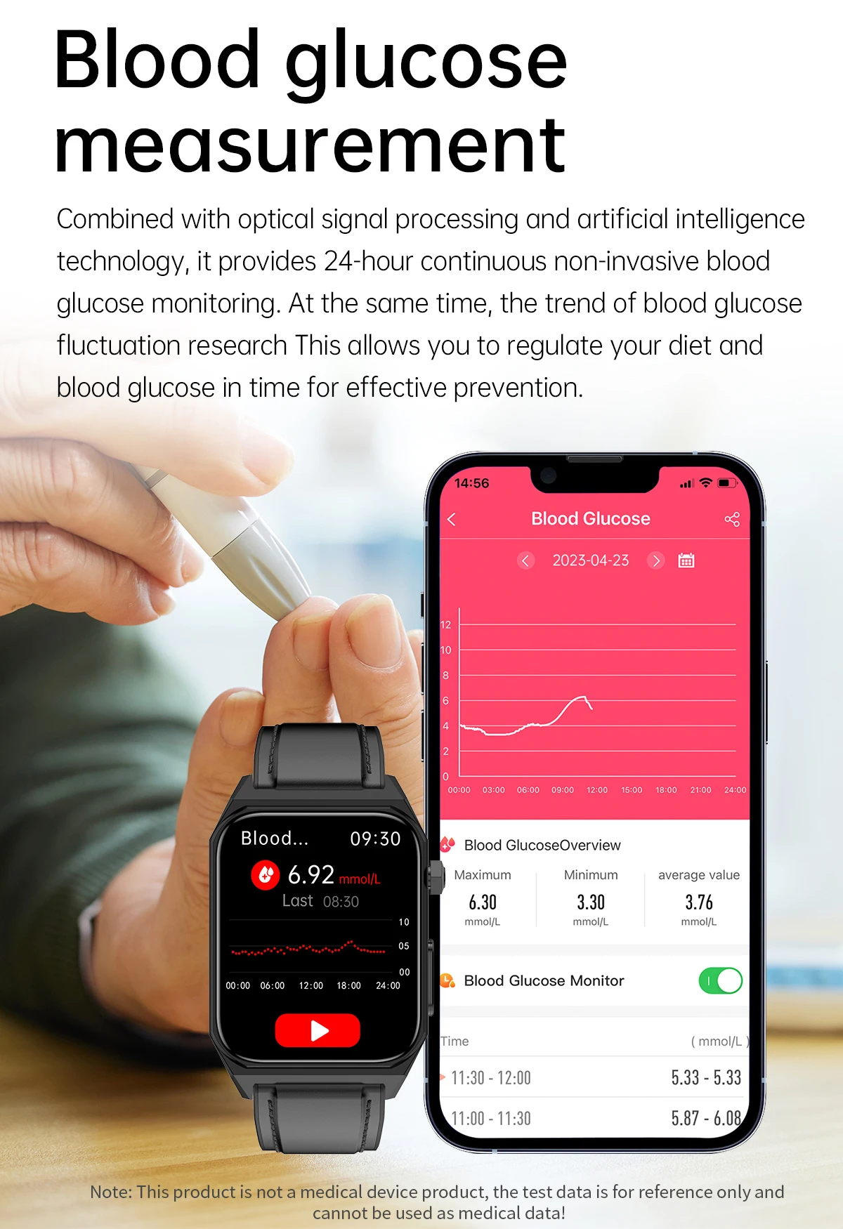 Мужские Водонепроницаемые Смарт-часы с функцией измерения уровня сахара в крови