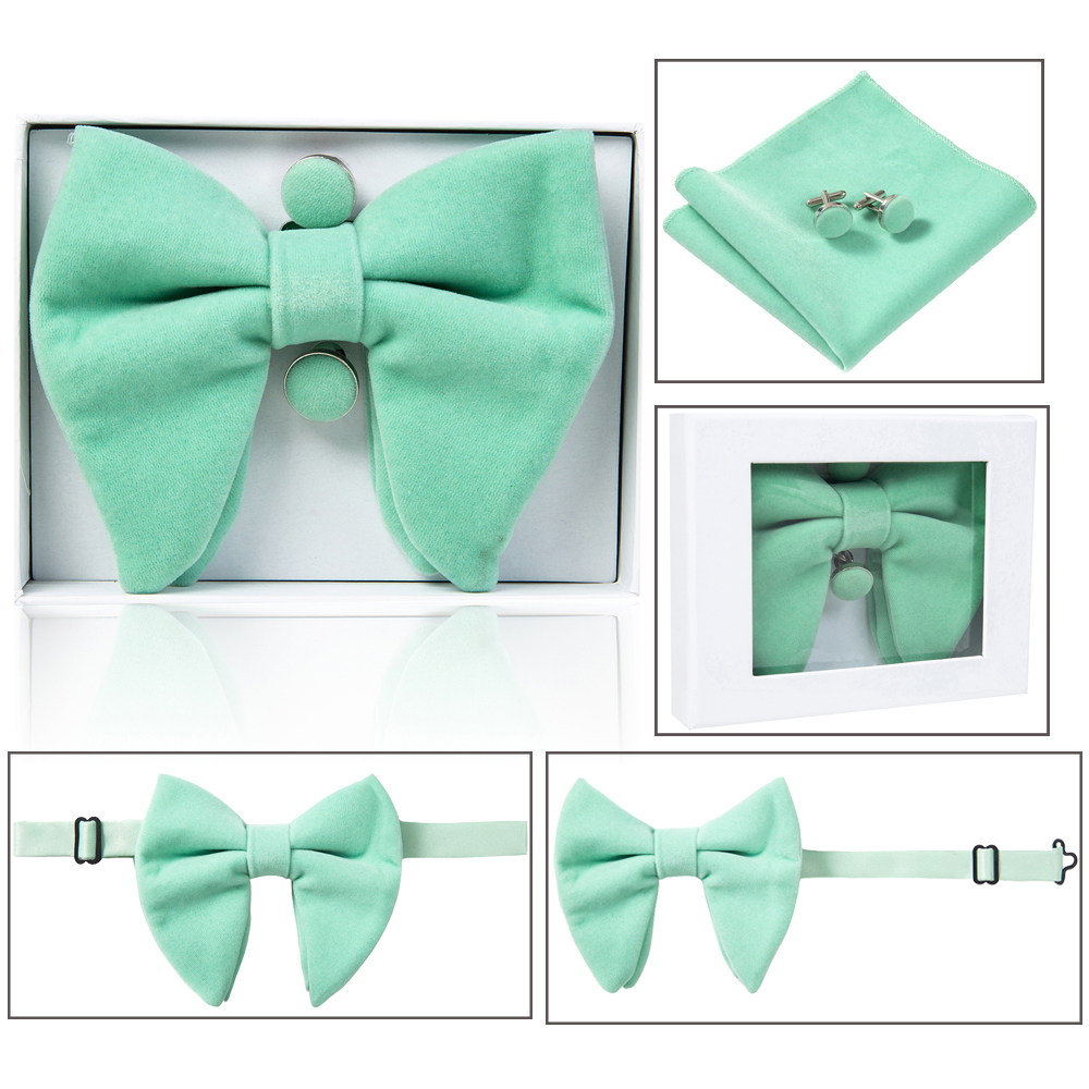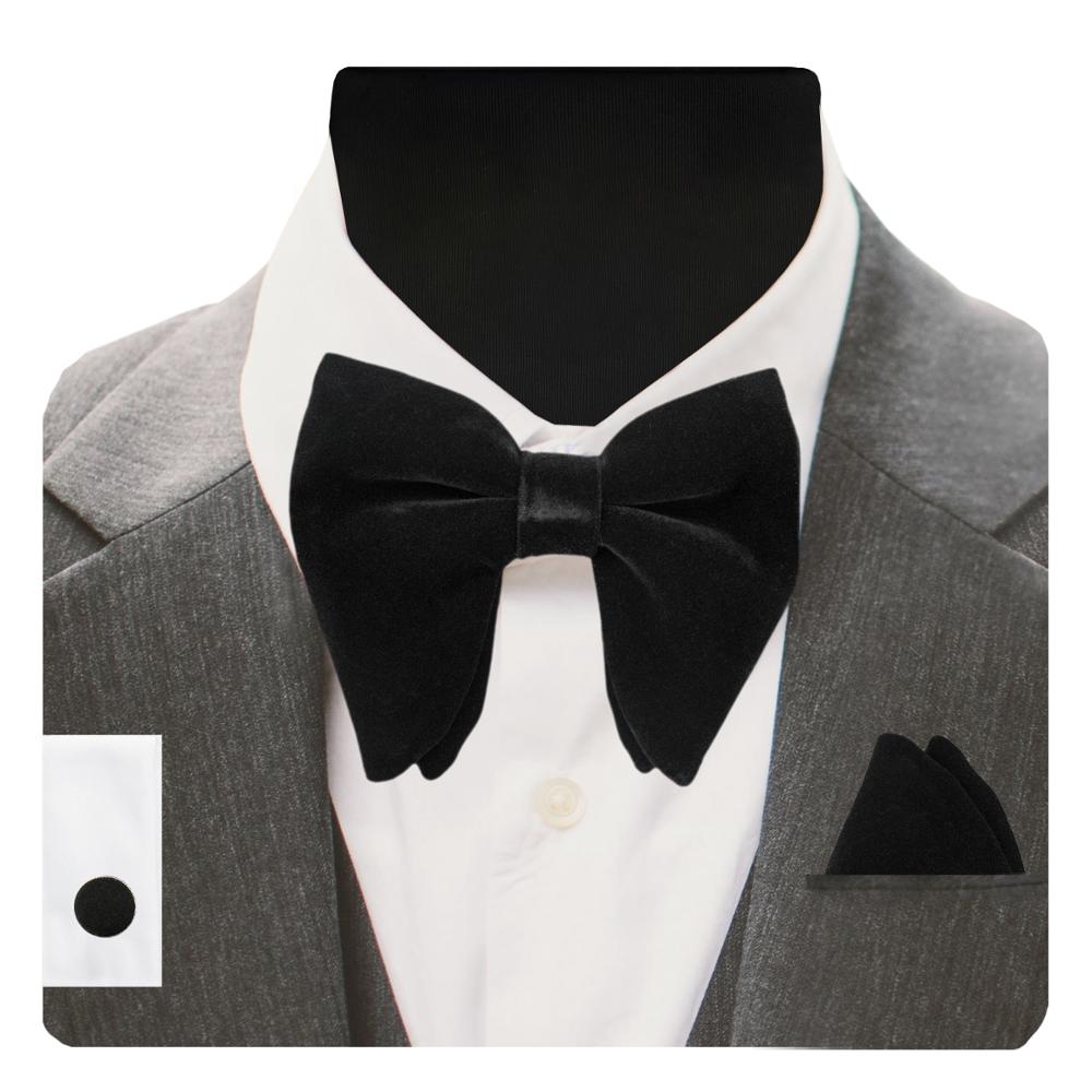 GUSLESON бархатный большой галстук-бабочка мужские галстуки-бабочки карманные Квадратные запонки набор с подарочной коробкой однотонный красный желтый галстук для мужчин свадьба