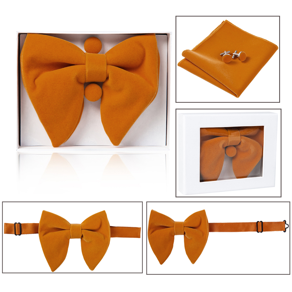 Мужской бархатный галстук-бабочка GUSLESON, большие карманные Квадратные запонки с подарочной коробкой, однотонный красный и желтый галстук для свадьбы
