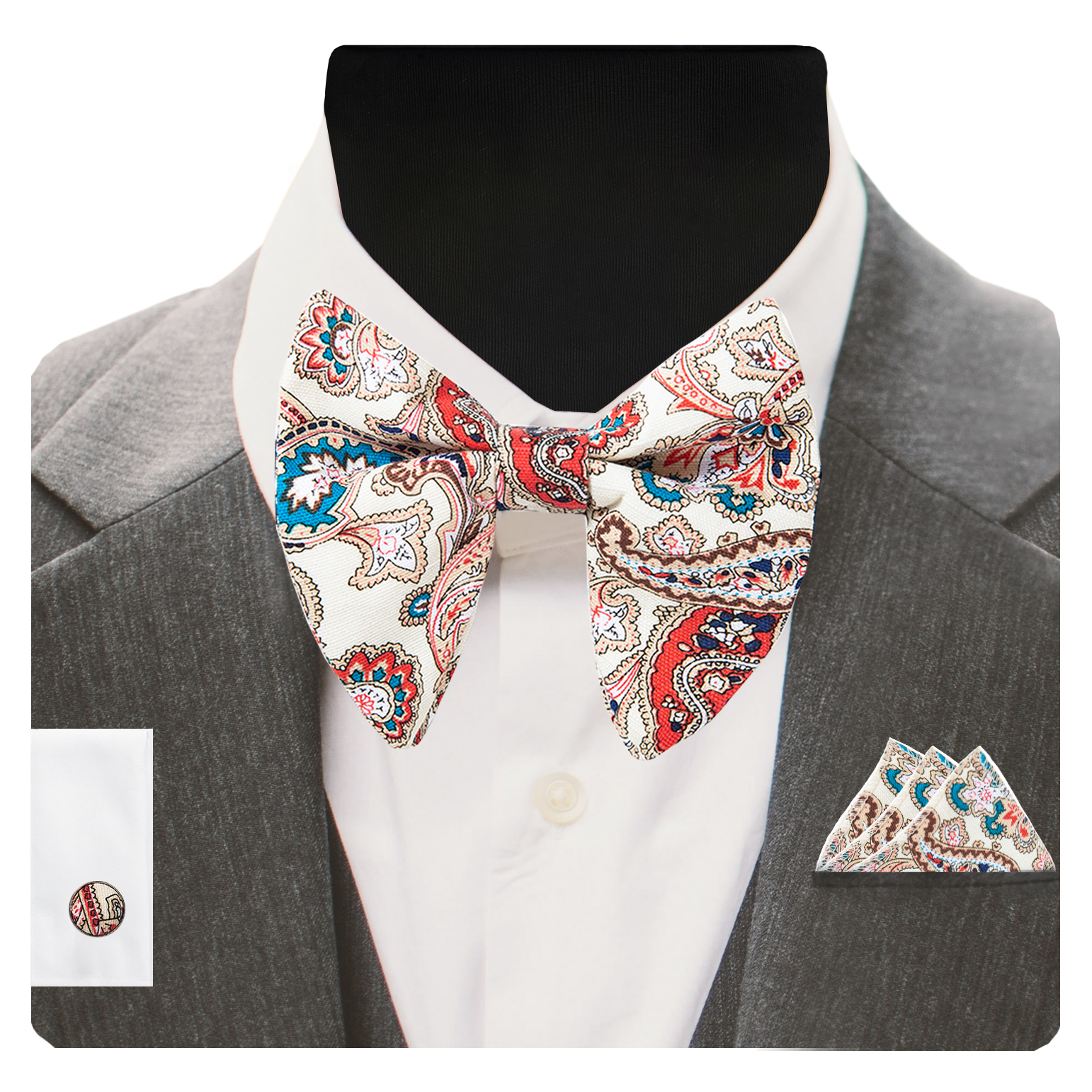 Bow tie set including bow tie, hanky and cufflinks