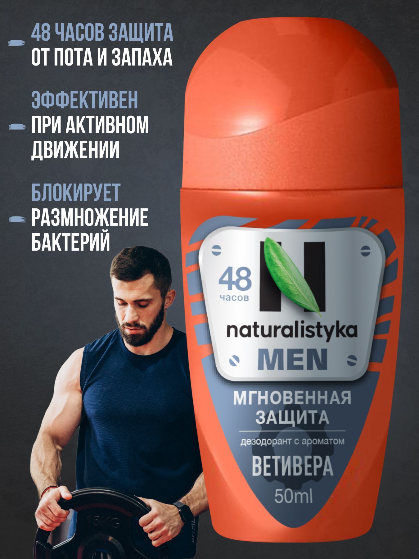 Мужской дезодорант с АРОМАТОМ ВЕТИВЕРА Мгновенная защита 48 часов, 50 мл