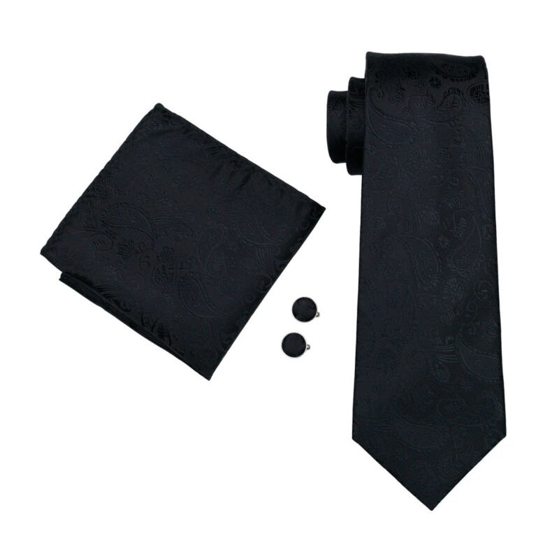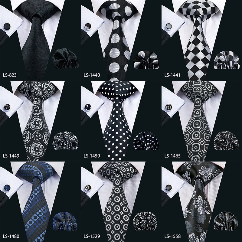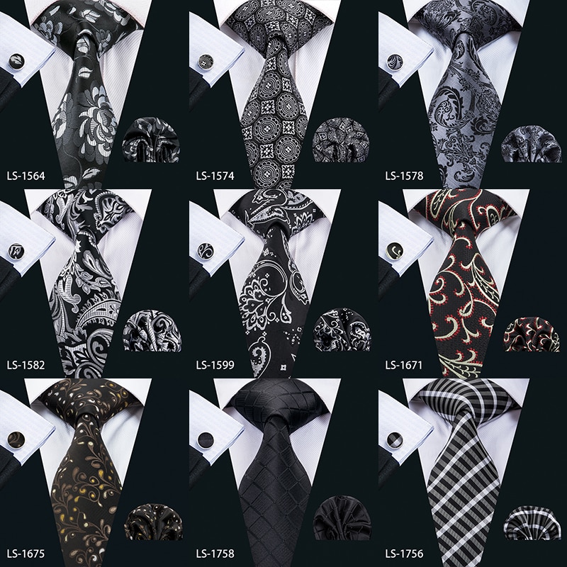 Мужской галстук, 100% шелк, Barry.Wang, новые классические черные Ханки, запонки, галстуки для мужчин, деловые, свадебные, вечерние, LS-823