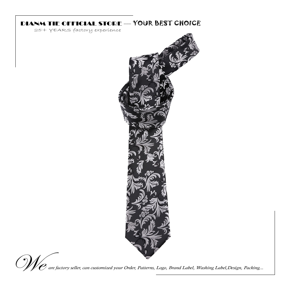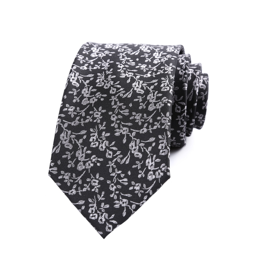 Мужской галстук DIANM 7 см, черный галстук с серыми цветами, мужские галстуки из полиэстера, деловые праздничные Галстуки для вечеринки