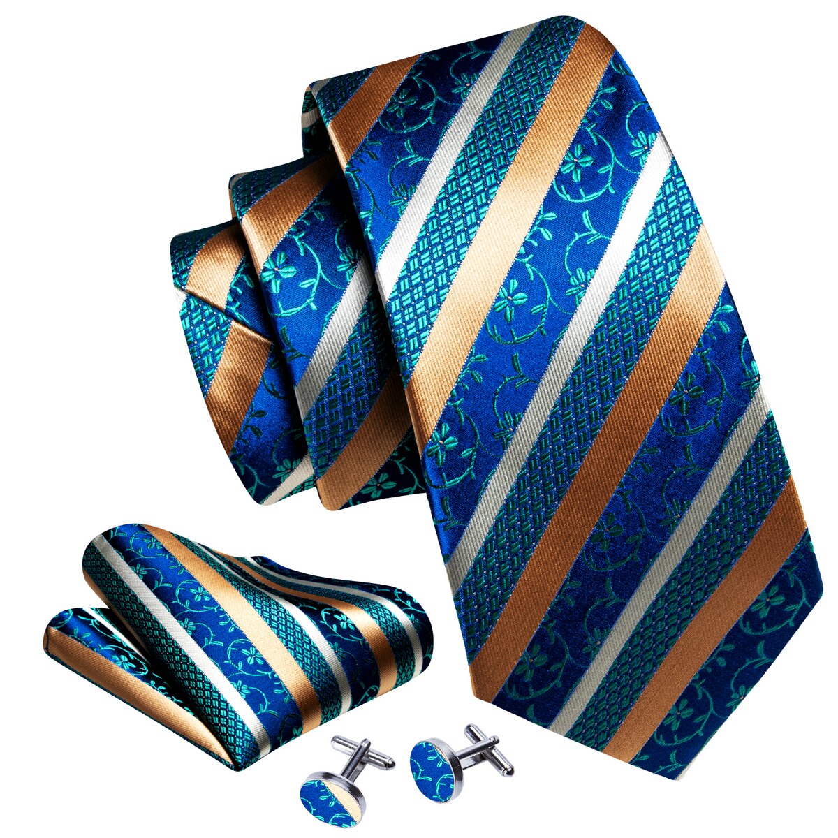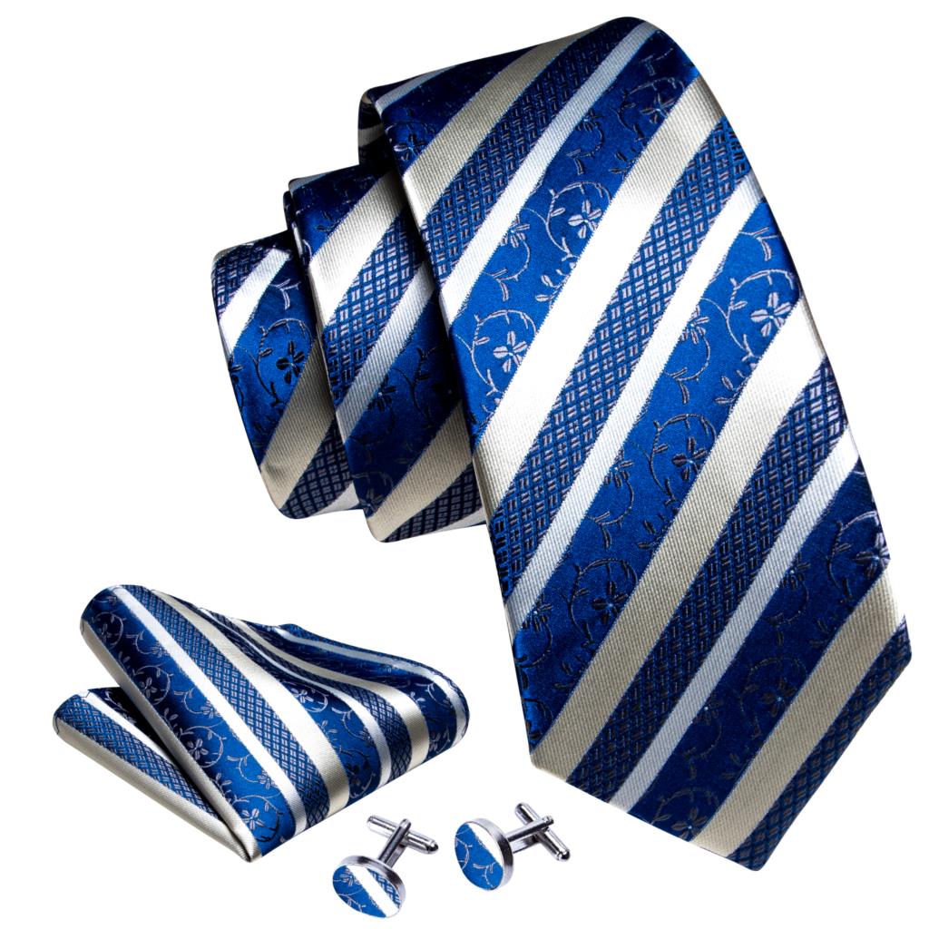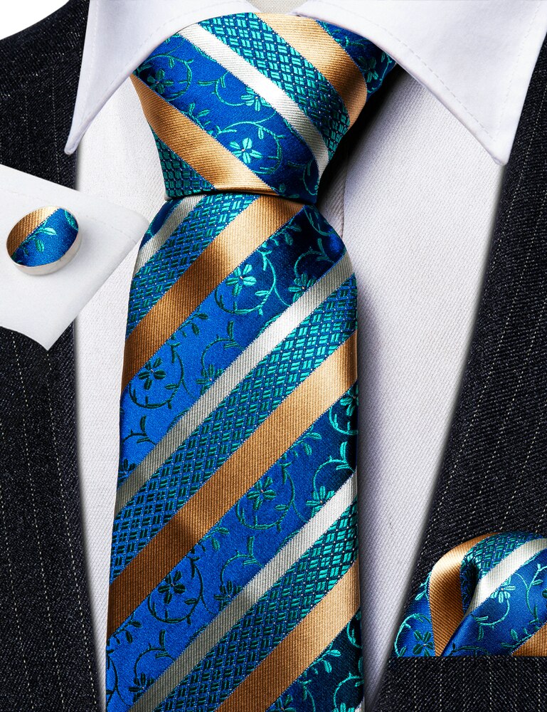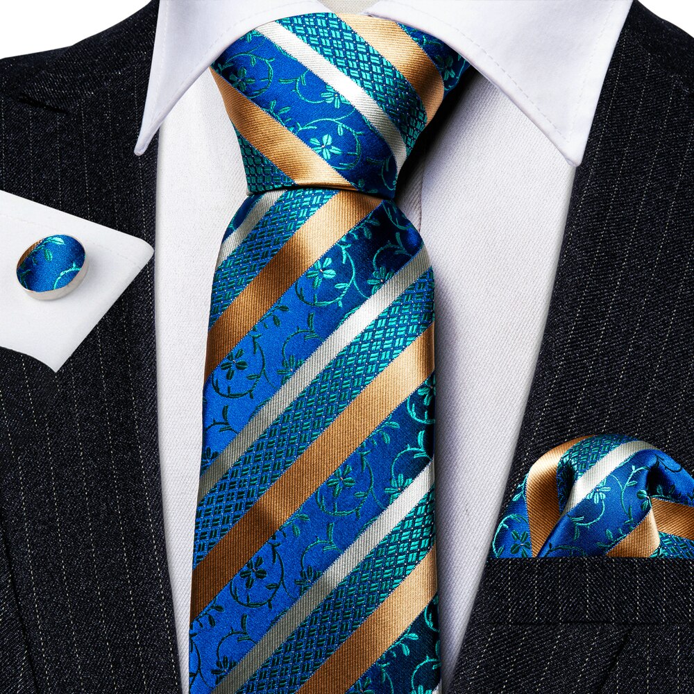 Мужской галстук Шелковый Синий Золотой Серебряный Полосатый Цветочный галстук носовой платок запонки набор для свадьбы деловой дропшиппинг Барри. Wang A-6052
