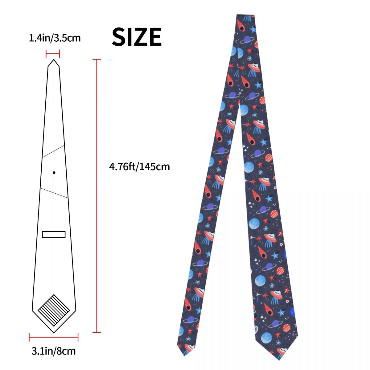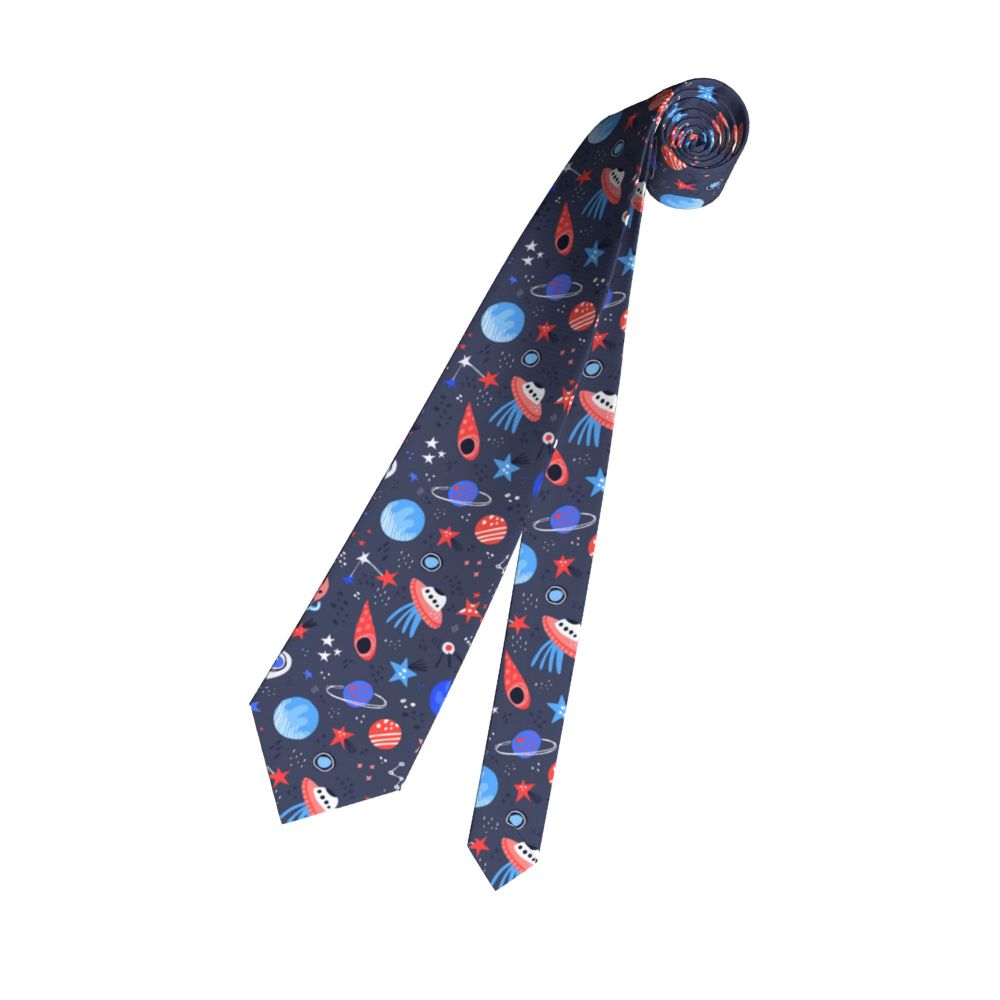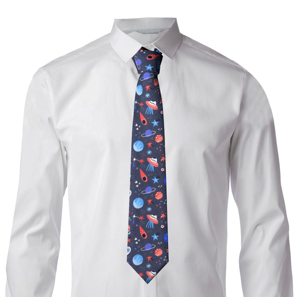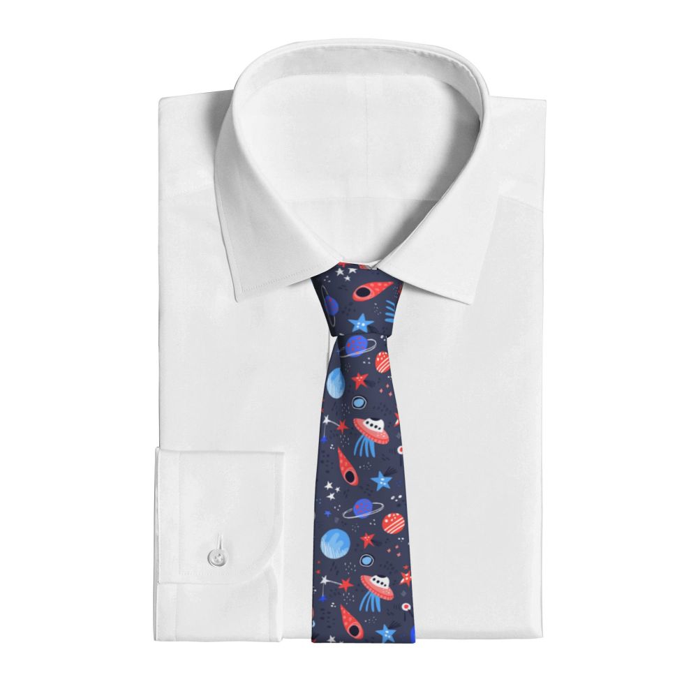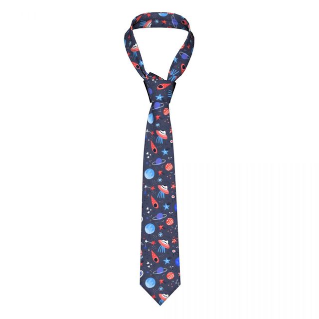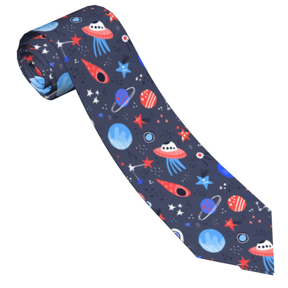 Мужской галстук тонкий Космос ручная работа мультфильм планеты звезды НЛО модный галстук свободный стиль мужской галстук женский свадебный