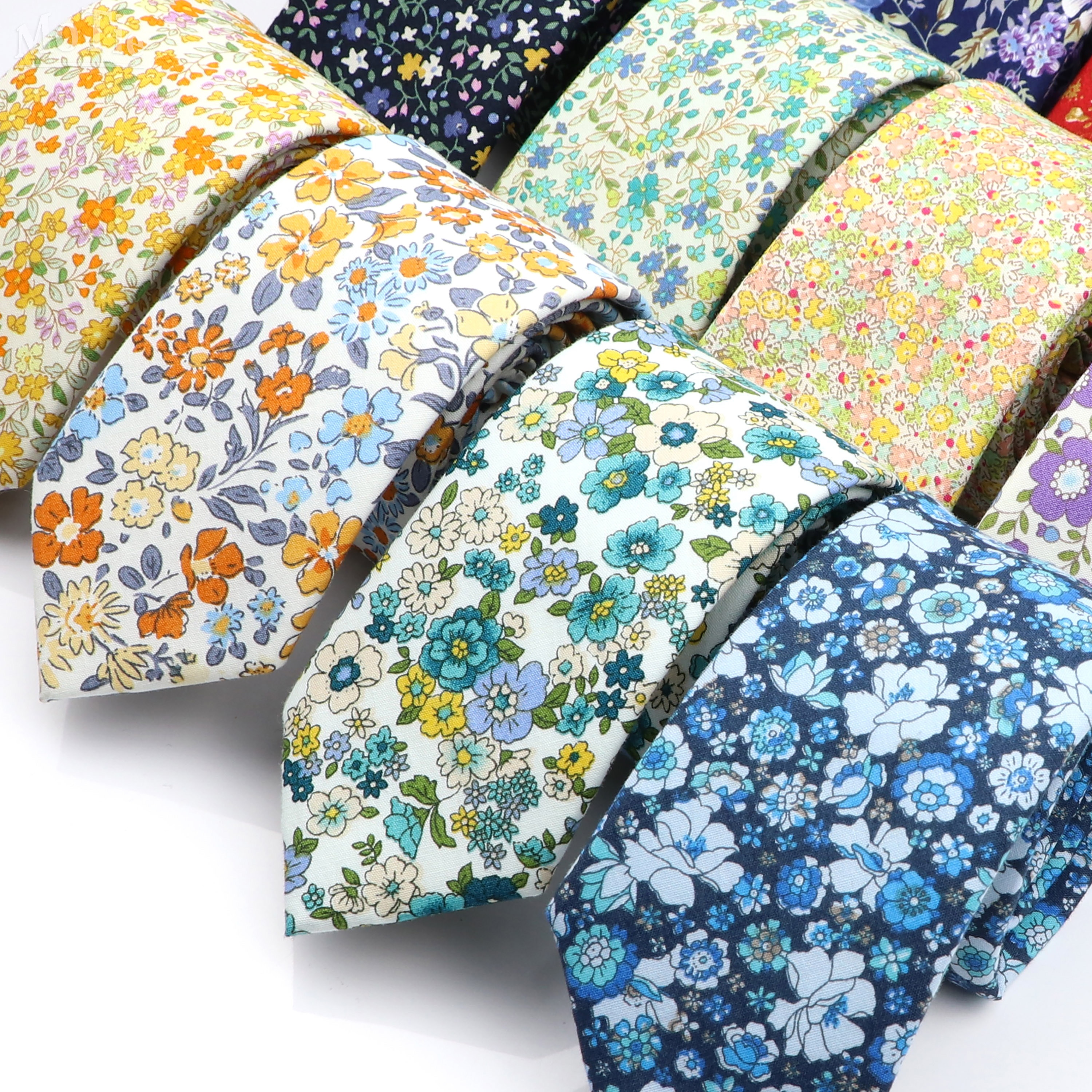 Мужской Хлопковый галстук с цветочным принтом, узкий Повседневный галстук для свадебного костюма, галстуки, розовый, синий, желтый галстук с цветочным принтом, Подарочный галстук