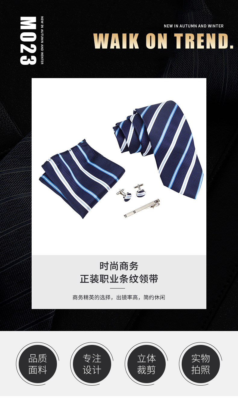 Мужской комплект из галстука и запонок, в полоску