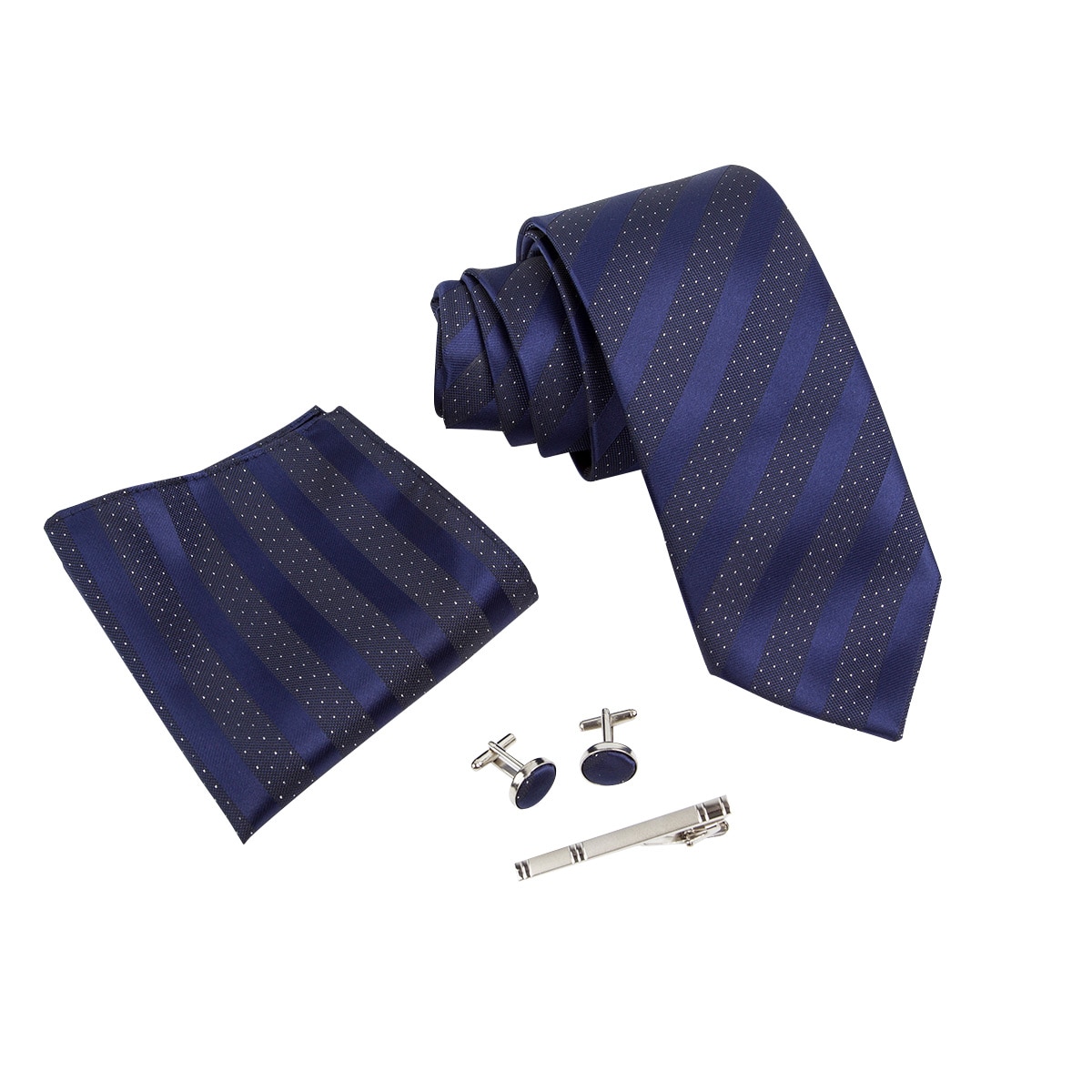 Ikepeibao мужские темно-синие полосатые наборы галстуков Карманный квадрат с металлическими запонками клип подходит для формальных вечеринок военно-морского флота