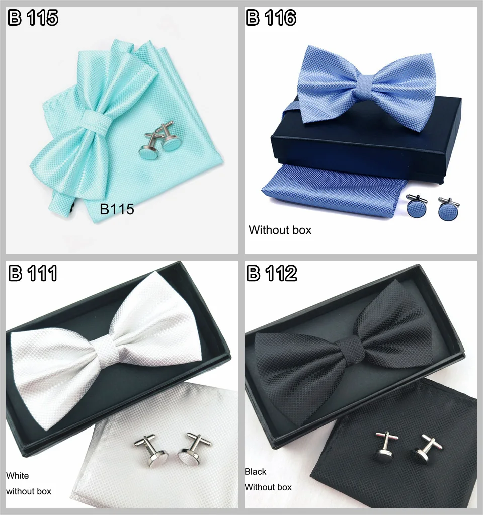 Full name Men Bow Tie Set 3ps Cufflinks Pocket Square Solid Color Check Bowtie F