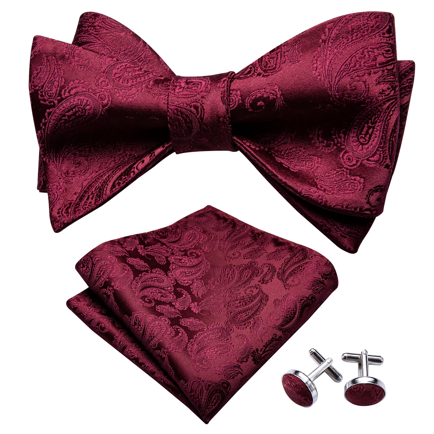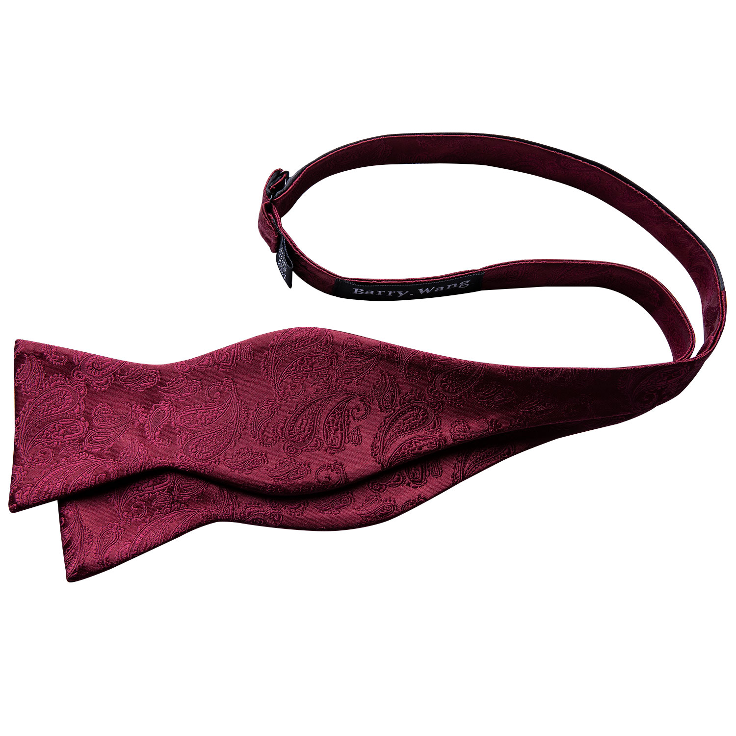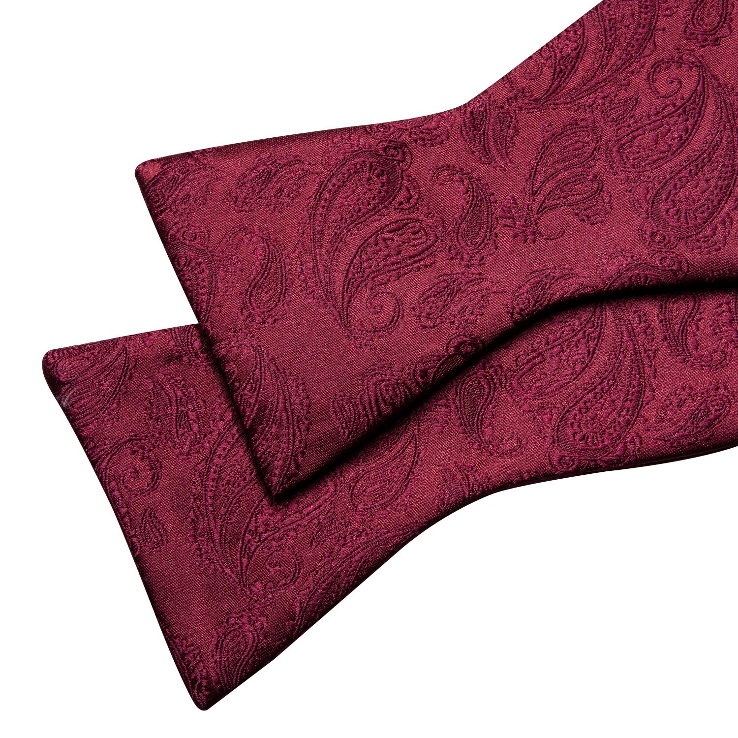 Мужской красный галстук-бабочка Barry.Wang, самозавязывающийся набор из шелковых галстуков Пейсли Цвета Бургунди, карманные Квадратные запонки, бутоньерка для свадебной вечеринки