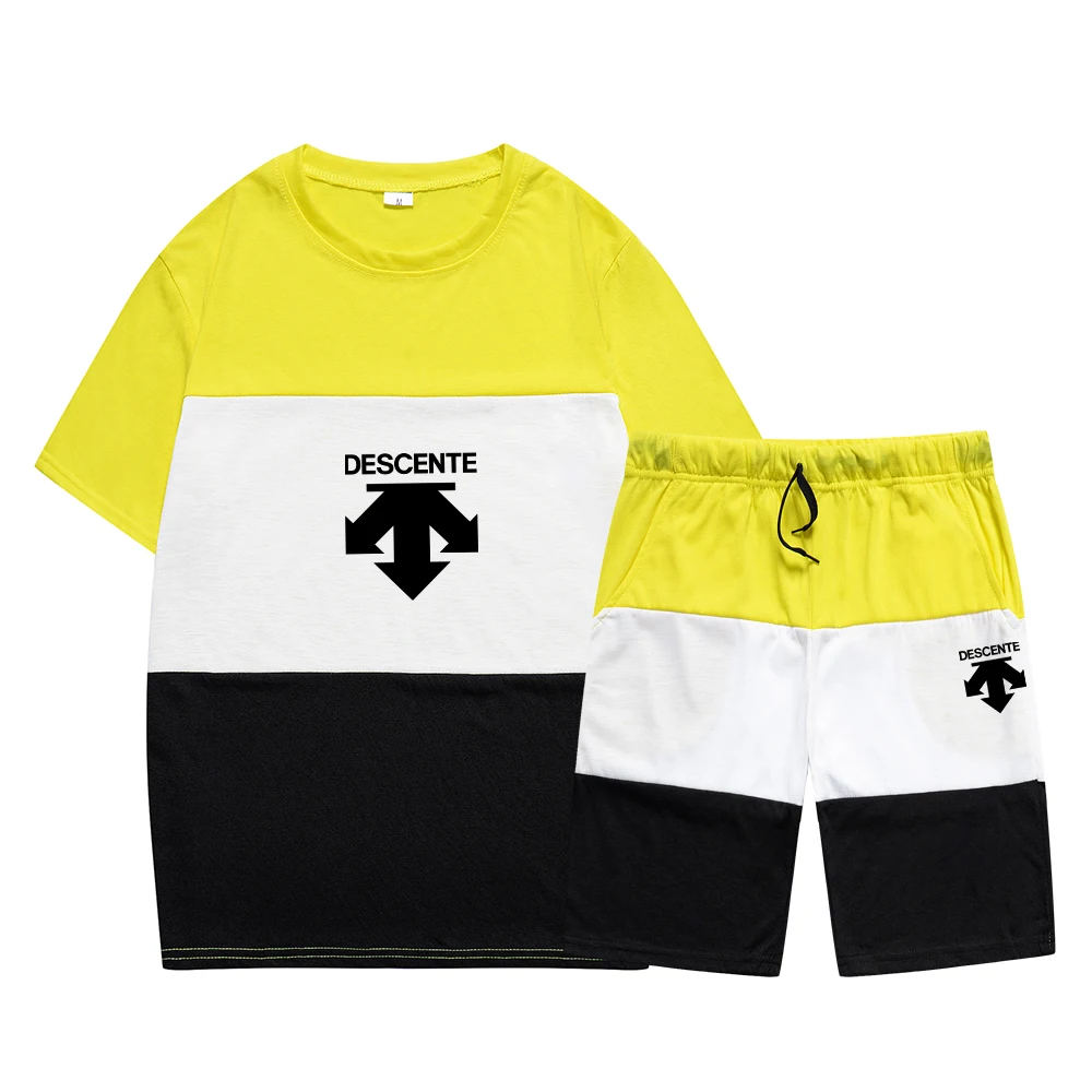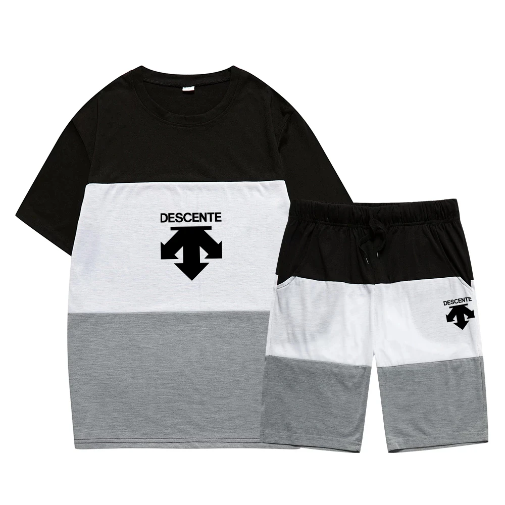 Мужской летний спортивный костюм, повседневный крутой костюм с коротким рукавом, спортивная одежда с принтом, футболка и шорты, костюм