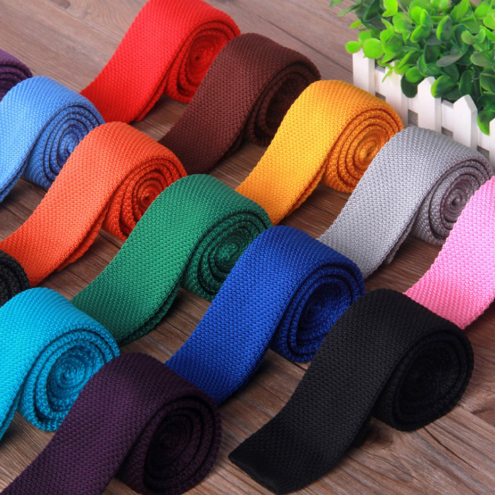 Мужской однотонный Вязаный Галстук, трикотажный Стандартный тканый простой галстук, узкий галстук, тонкий тканый простой галстук, узкие галстуки