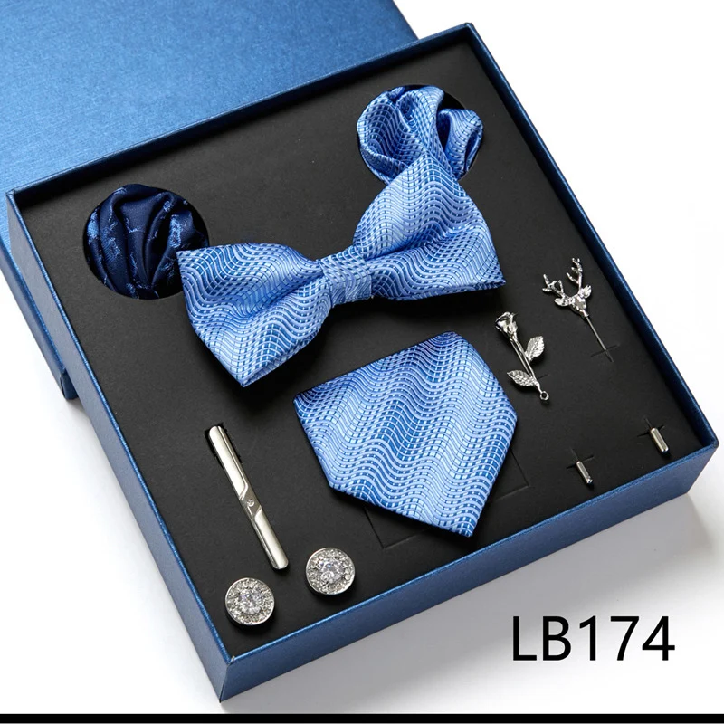 (Включая 1 галстук и 1 галстук-бабочка и 1 Запонки и 1 зажим для галстука и 2 отворота и 2 кармана squre)
