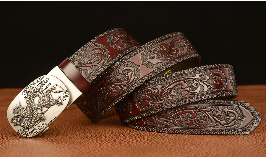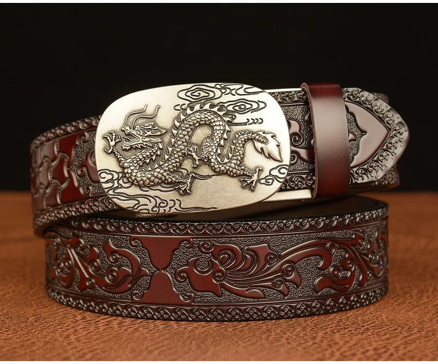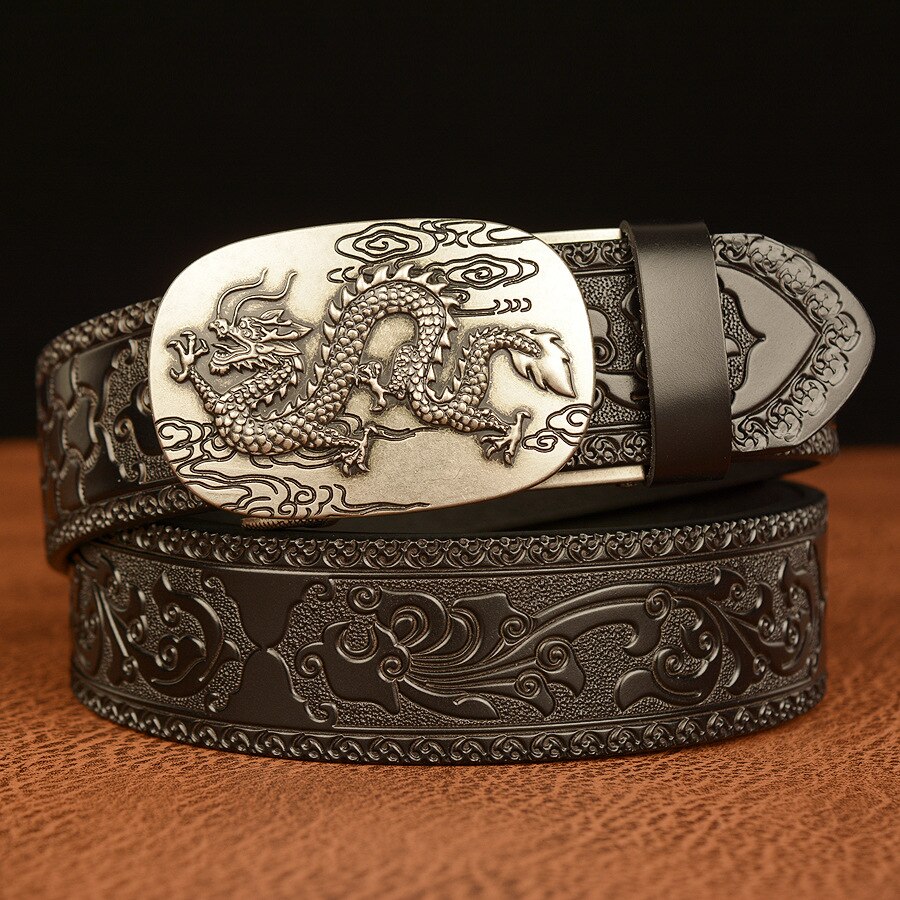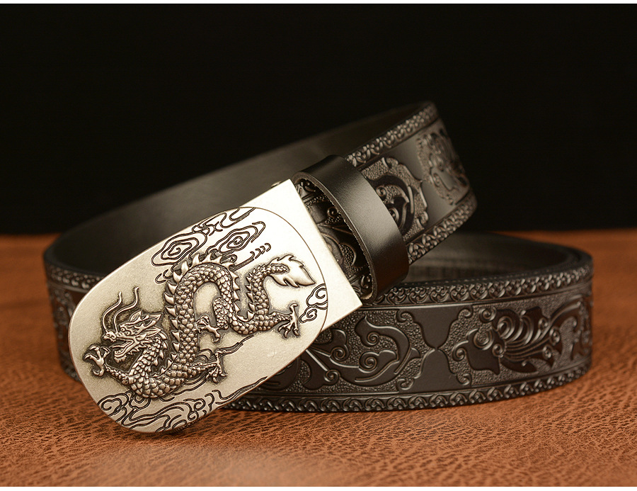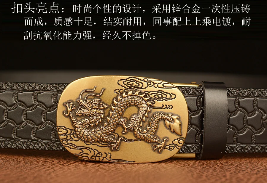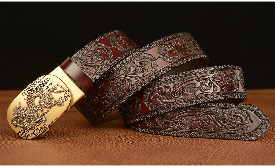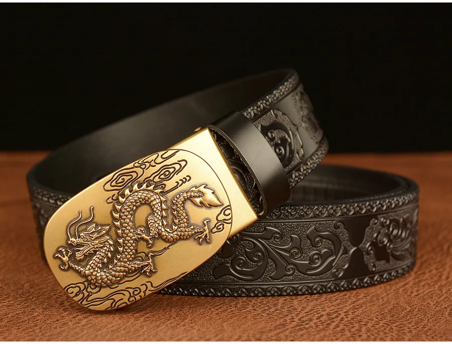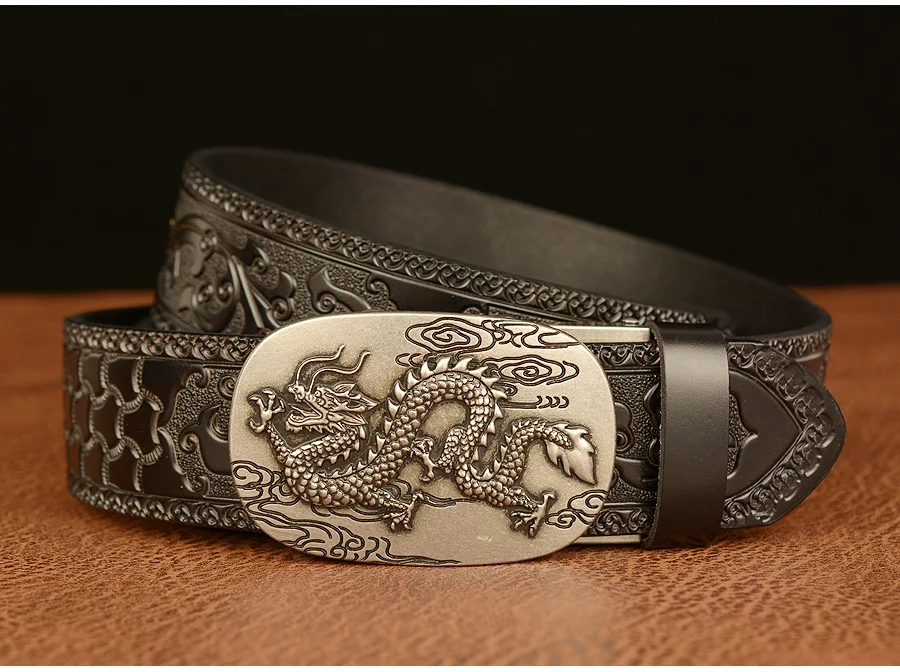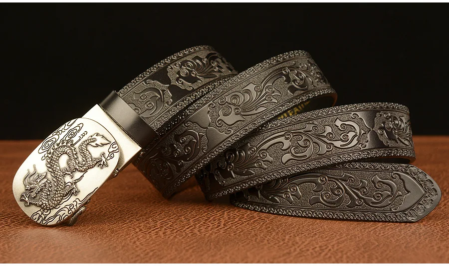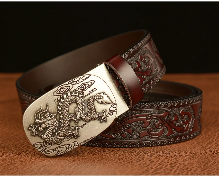Мужской ремень из натуральной кожи, роскошный серебряный узор дракона, металлические автоматические пряжки, кожаные ремни для мужчин, джинсовый пояс, модный подарок