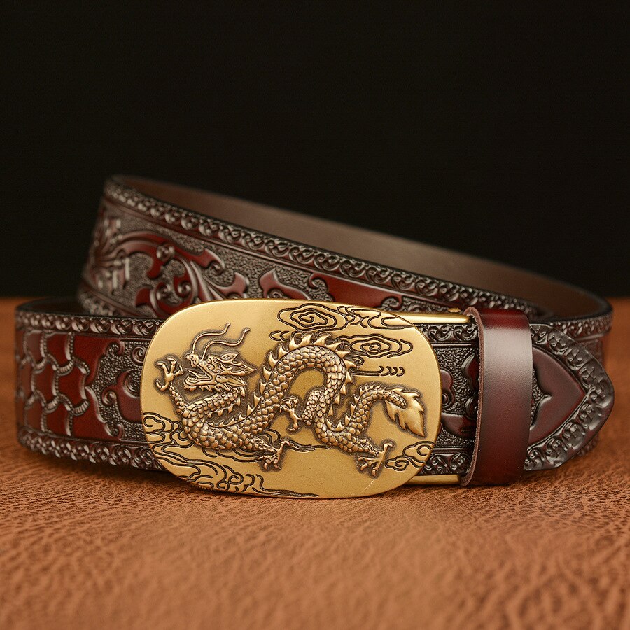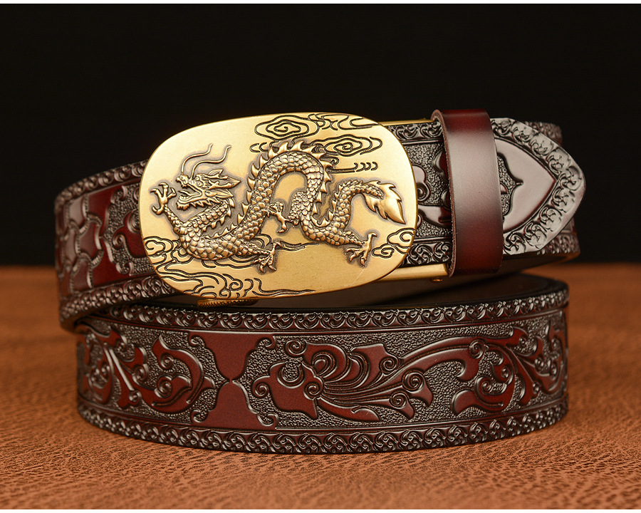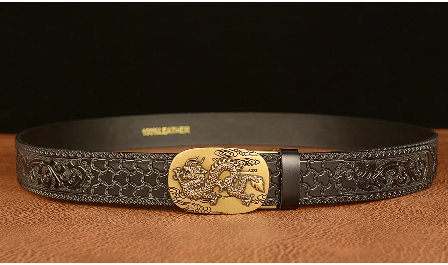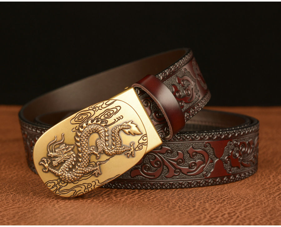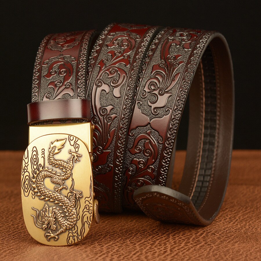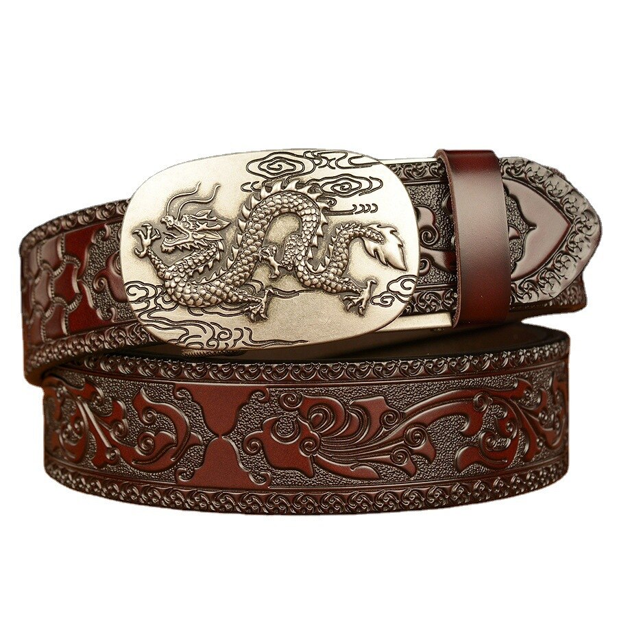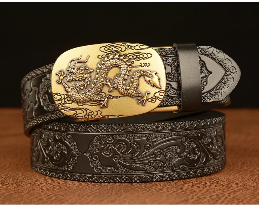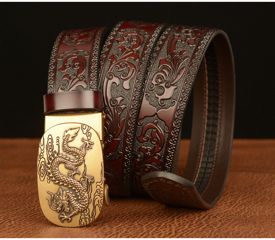 Мужской ремень из натуральной кожи, роскошный серебряный узор дракона, металлические автоматические пряжки, кожаные ремни для мужчин, джинсовый пояс, модный подарок