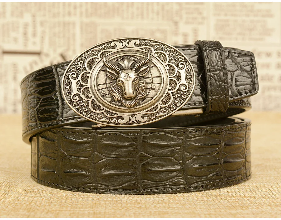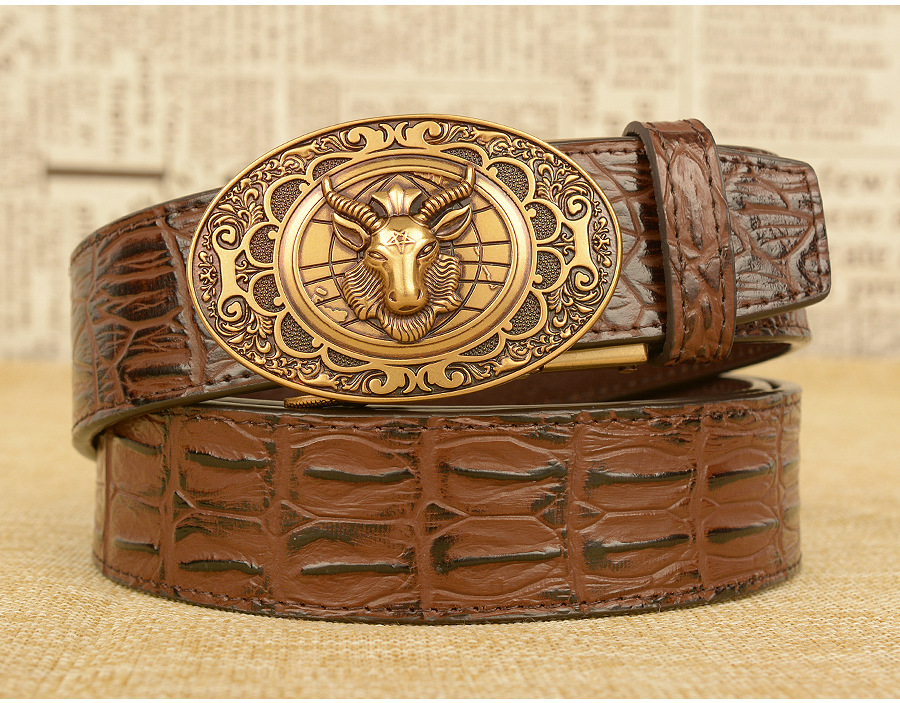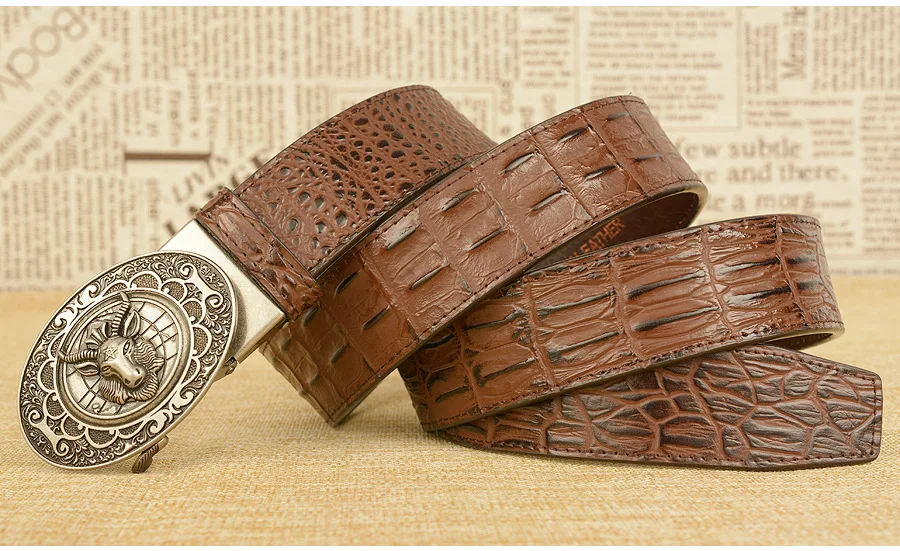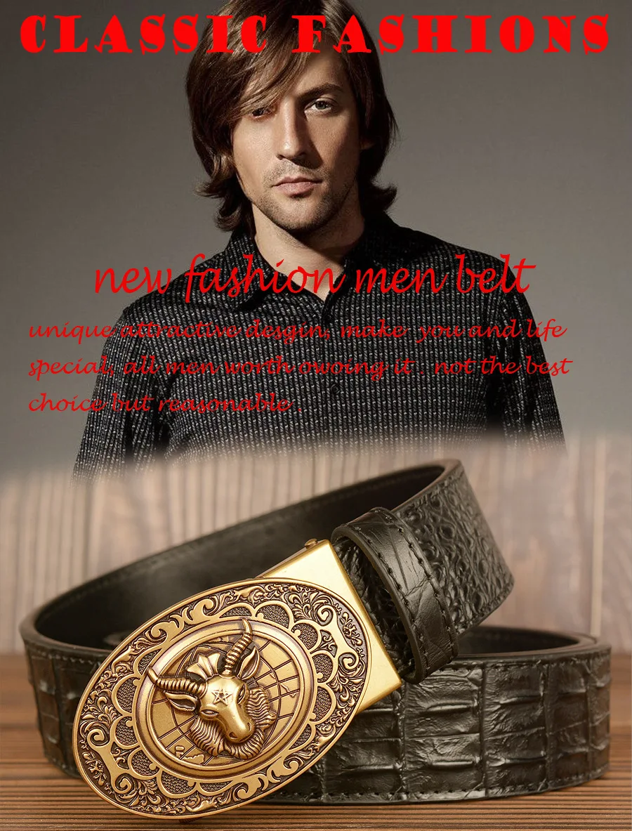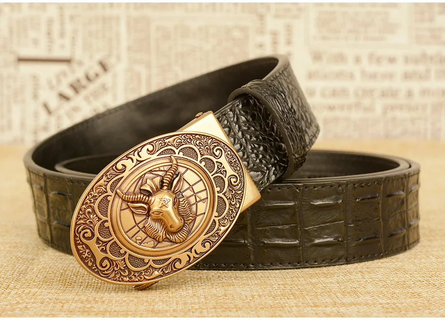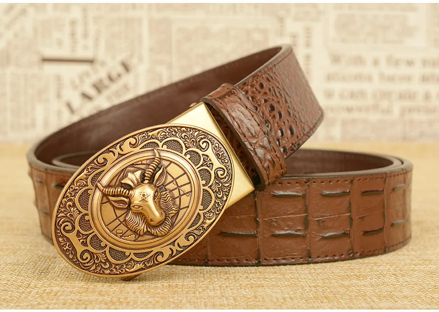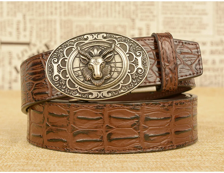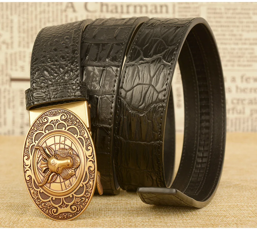 Мужской ремень с автоматической пряжкой, узор в виде овечьей головы, мужские ремни, люксовый бренд, мужской пояс, деловая натуральная кожа, модная воловья кожа