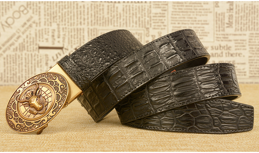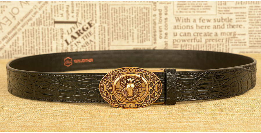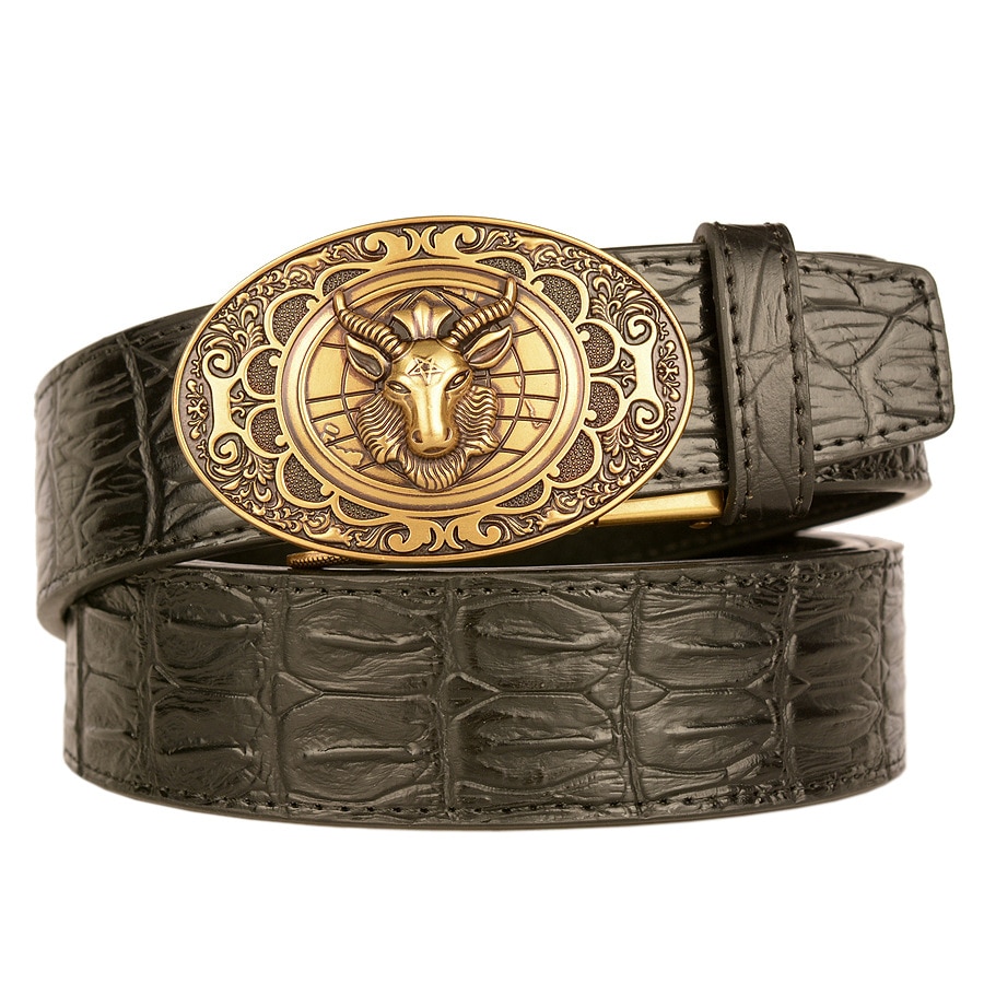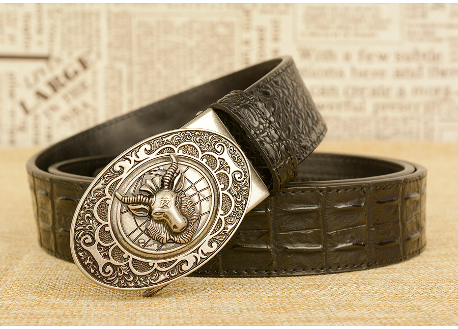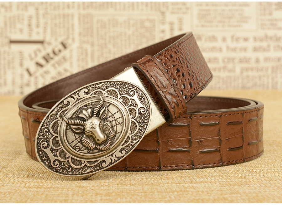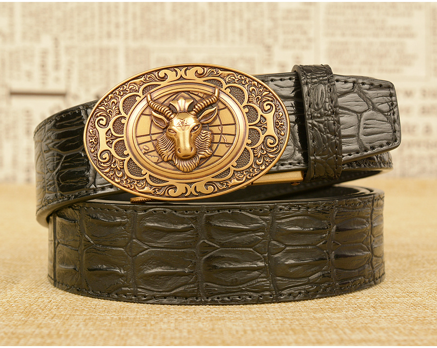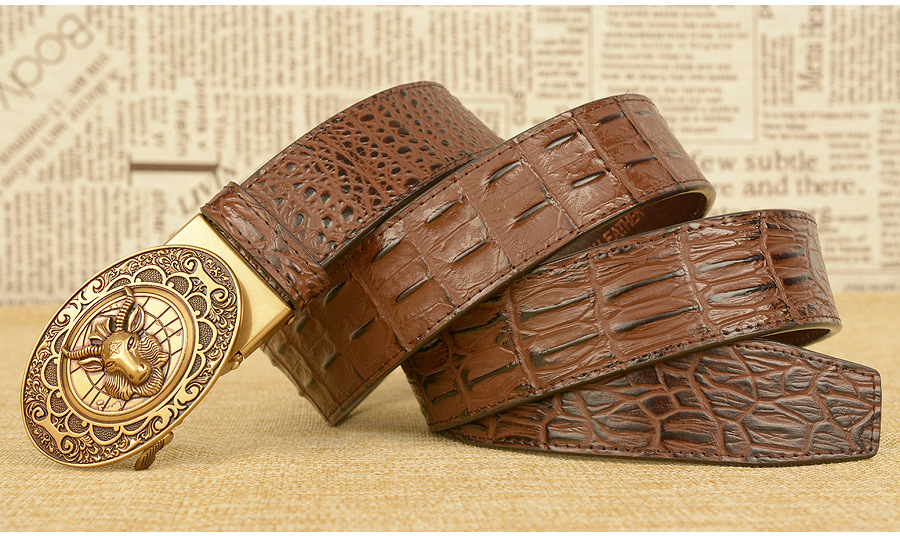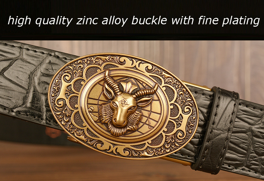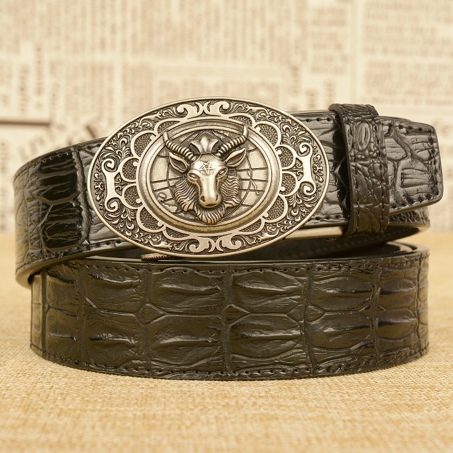 Мужской ремень с автоматической пряжкой, узор в виде овечьей головы, мужские ремни, люксовый бренд, мужской пояс, деловая натуральная кожа, модная воловья кожа