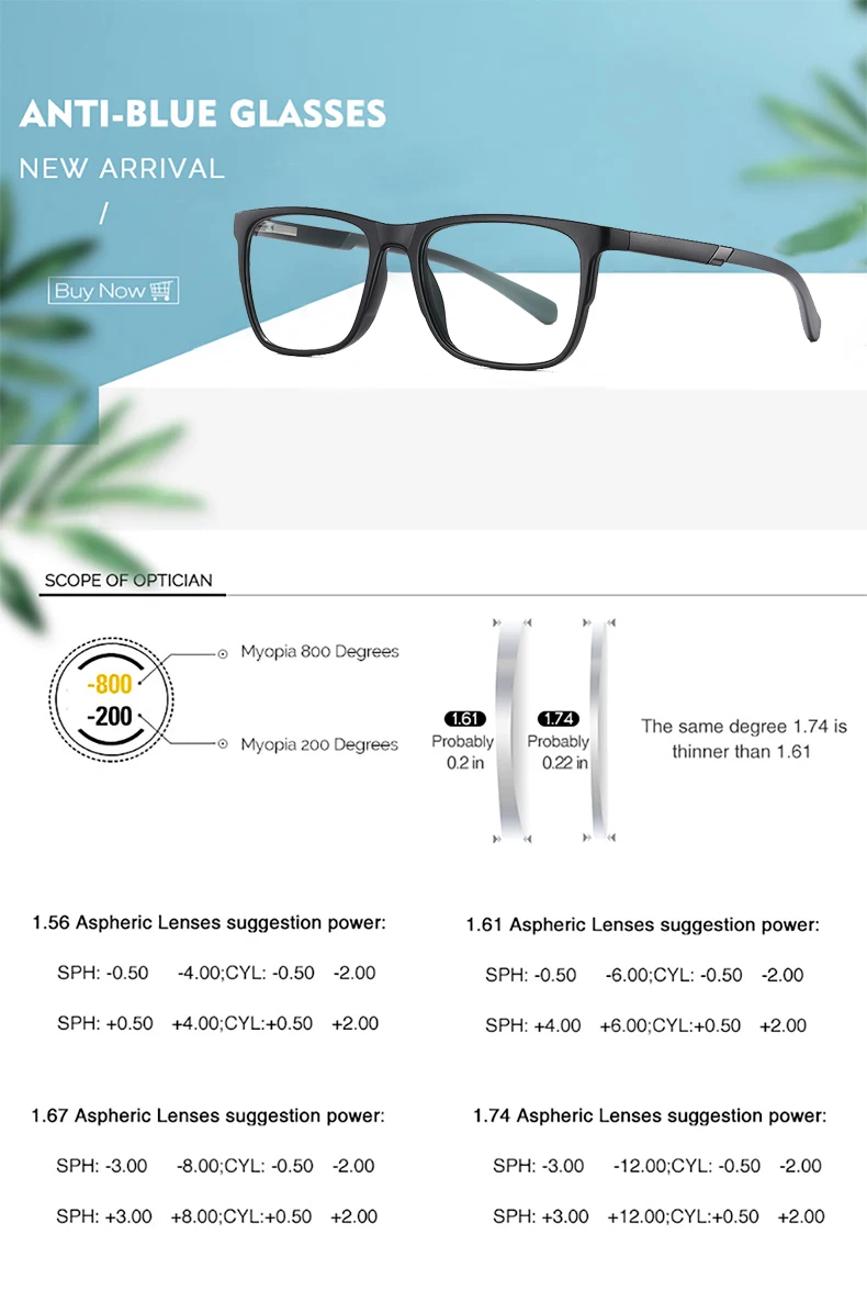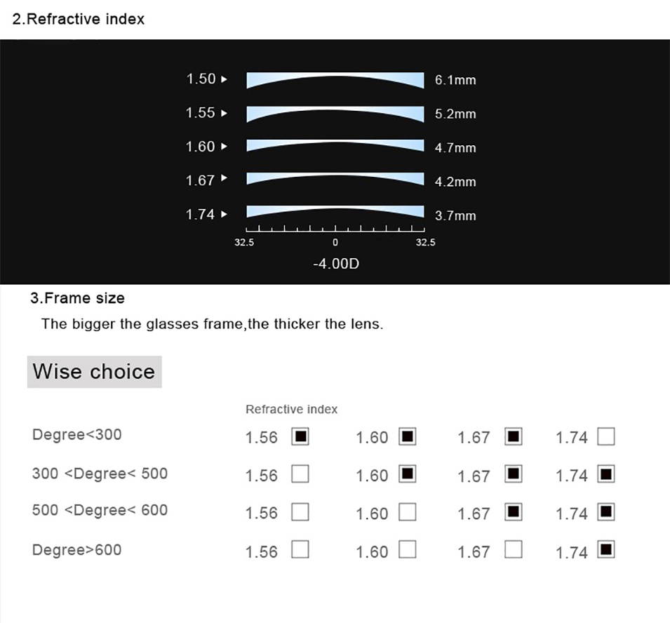 Myopia Glasses Choose 1.56 Myopia -0.50 to -3.00