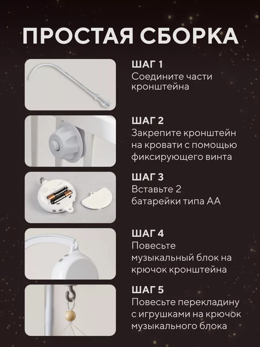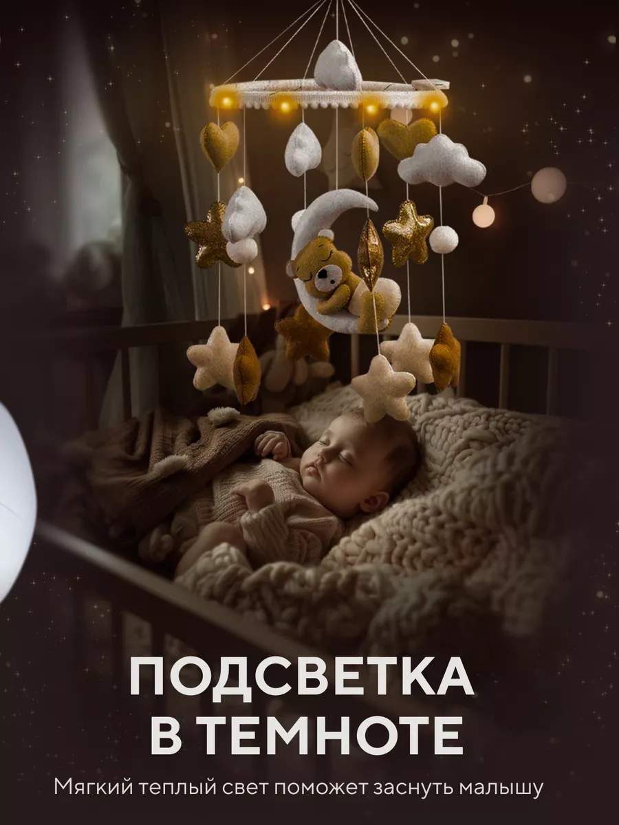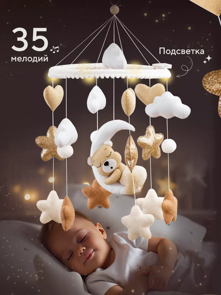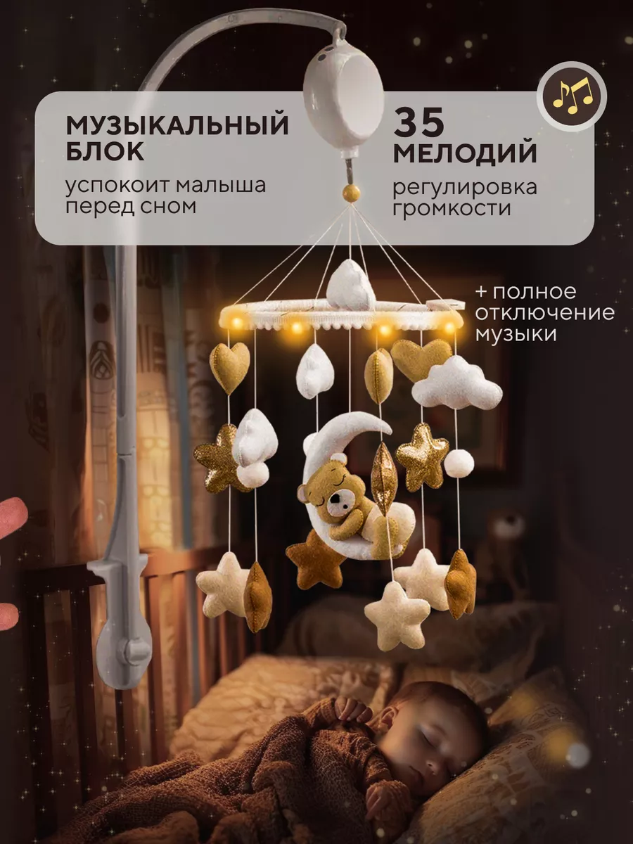 Музыкальный мобиль в детскую кроватку для новорождённых