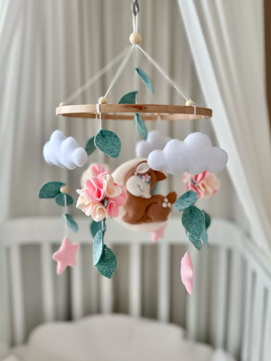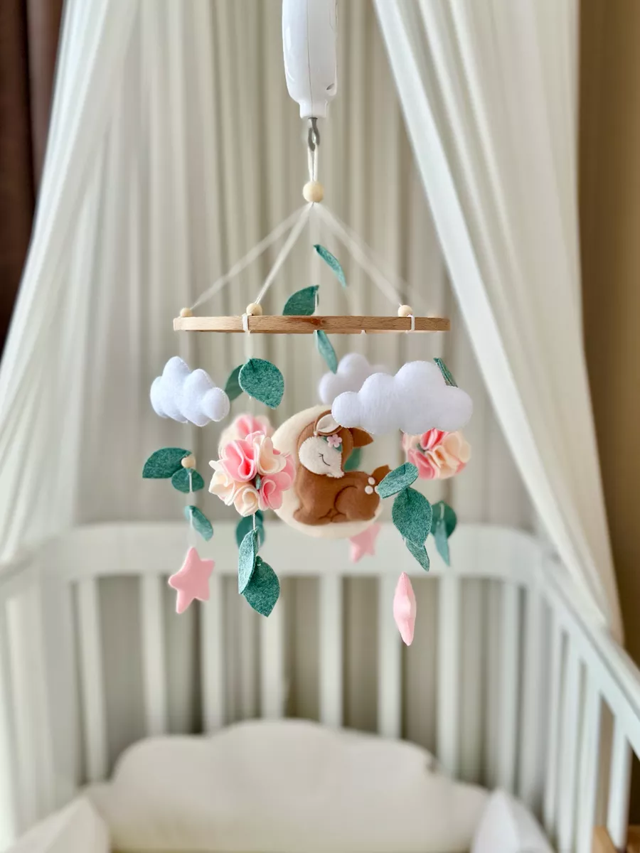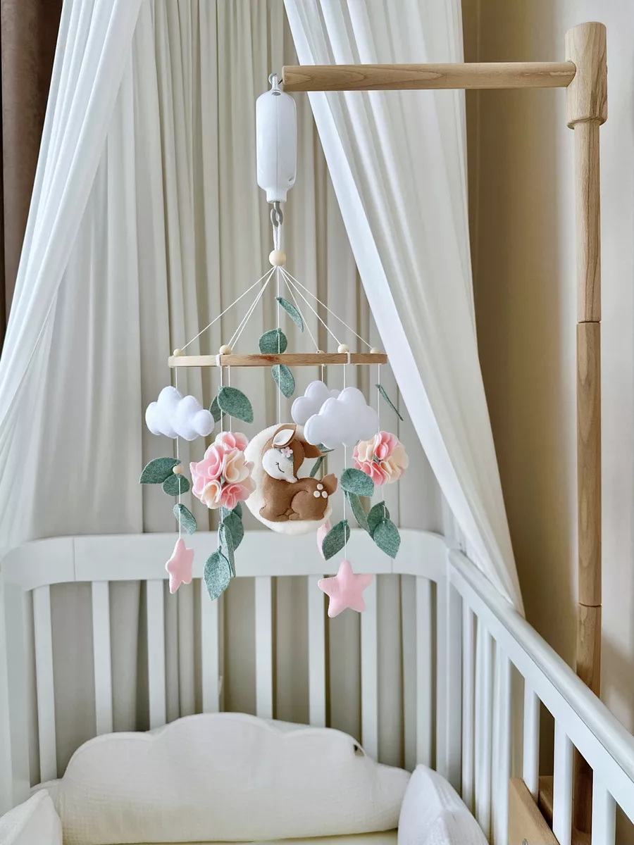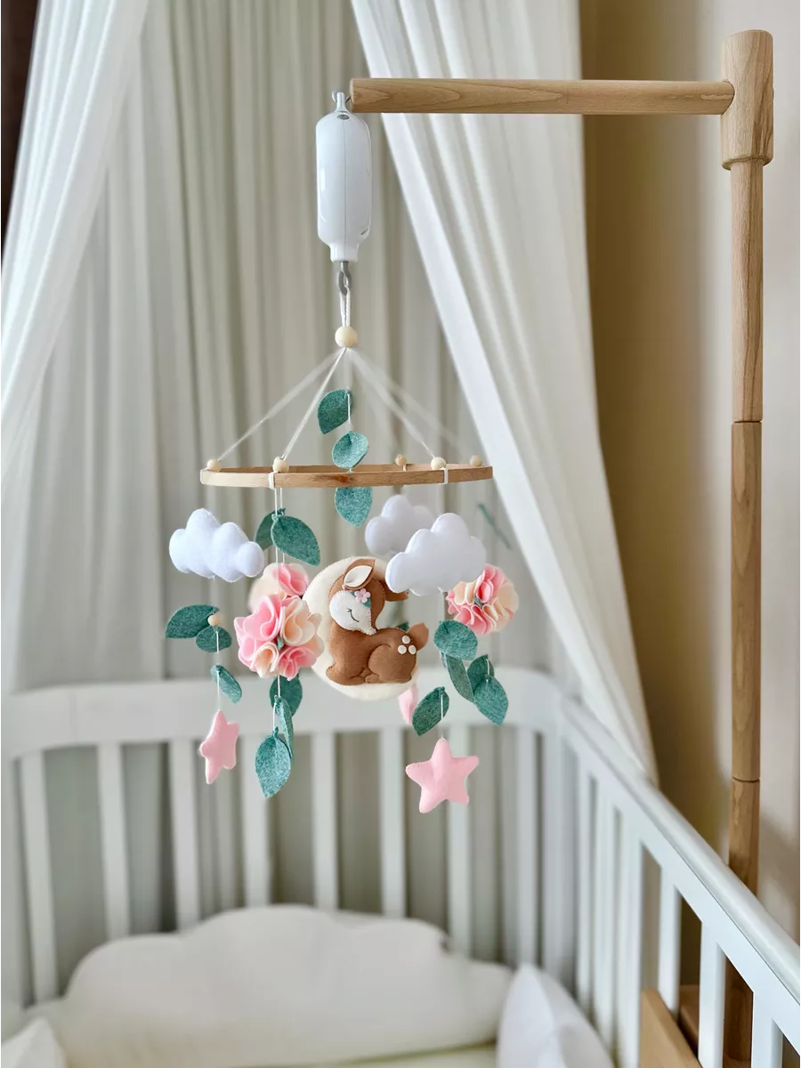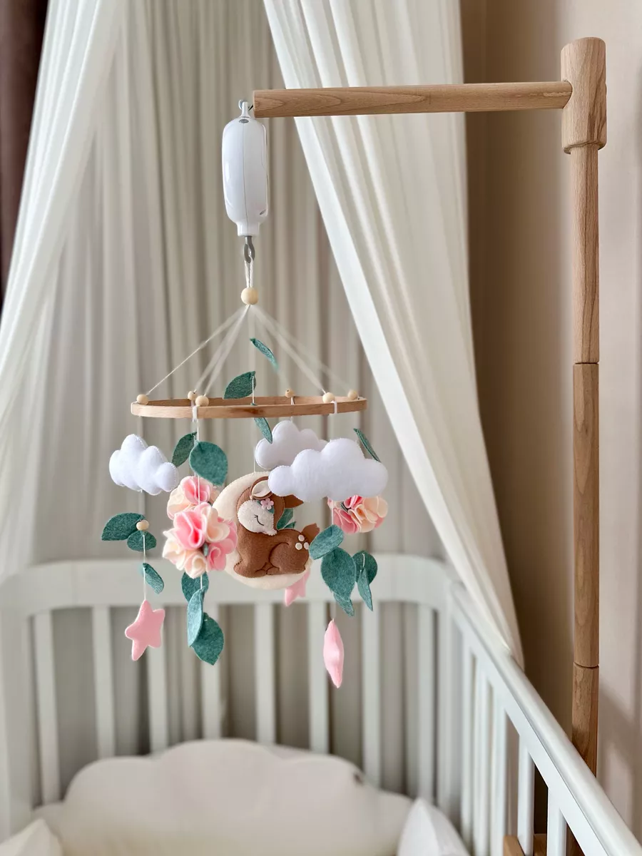 Особенности мобиля вращение игрушек; музыкальный; деревянный кронштейн