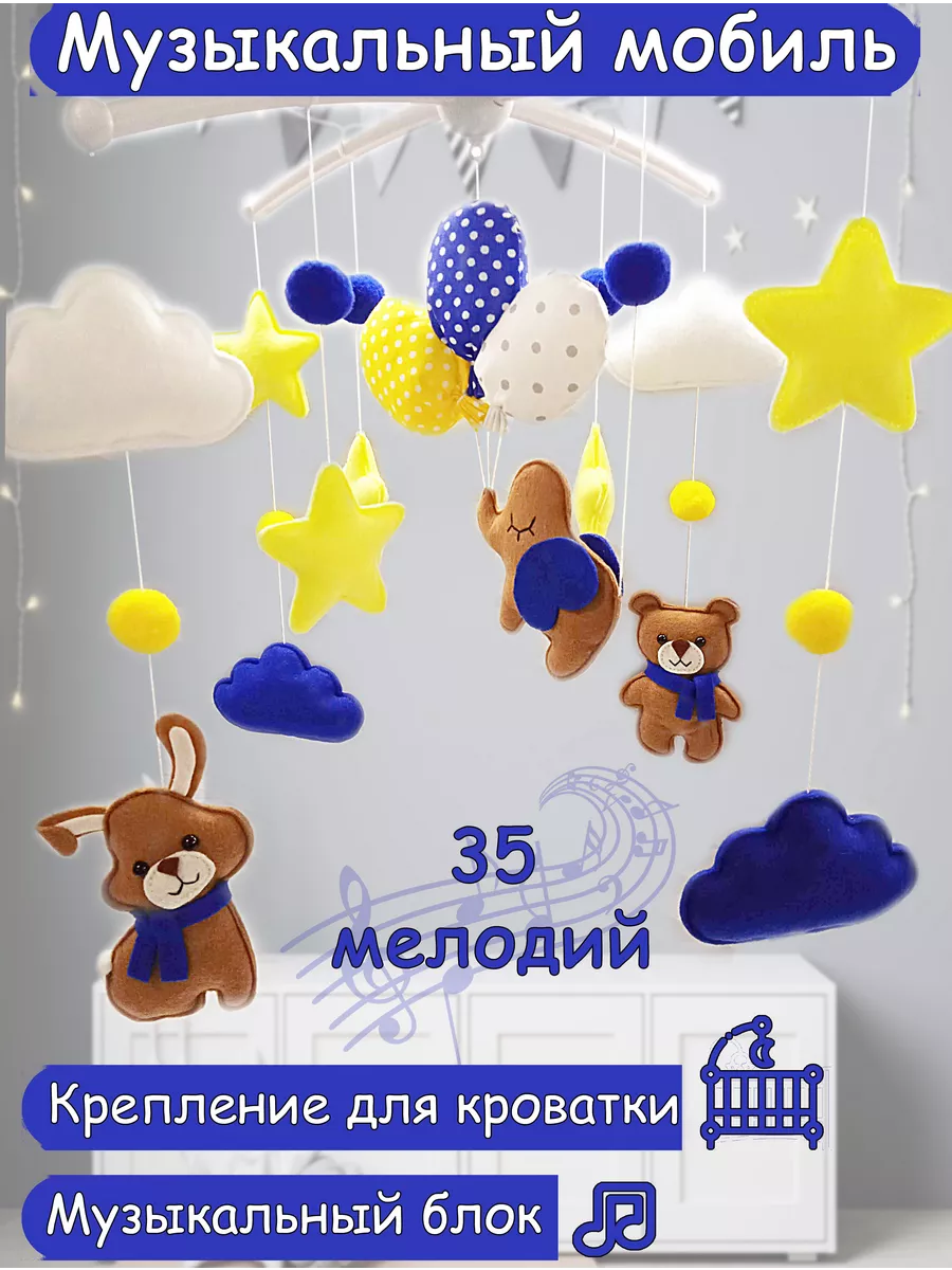 Особенности мобиля вращение игрушек; музыкальный; винтовое крепление