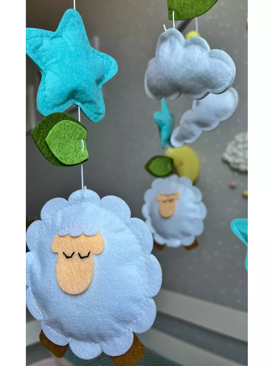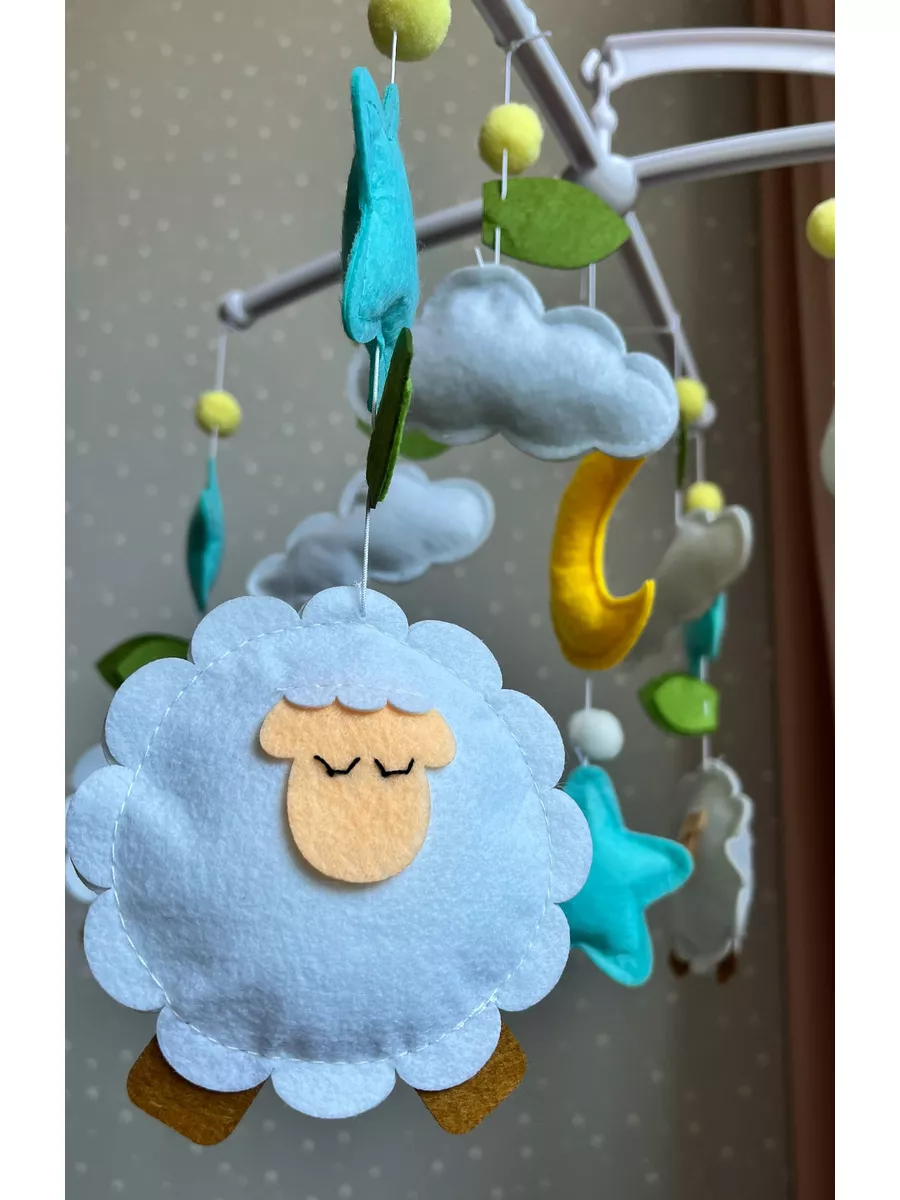Музыкальный мобиль в кроватку из фетра "Сонные барашки"