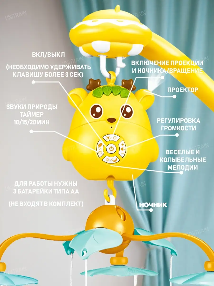 Особенности мобиля музыкальный блок; проектор; ночник