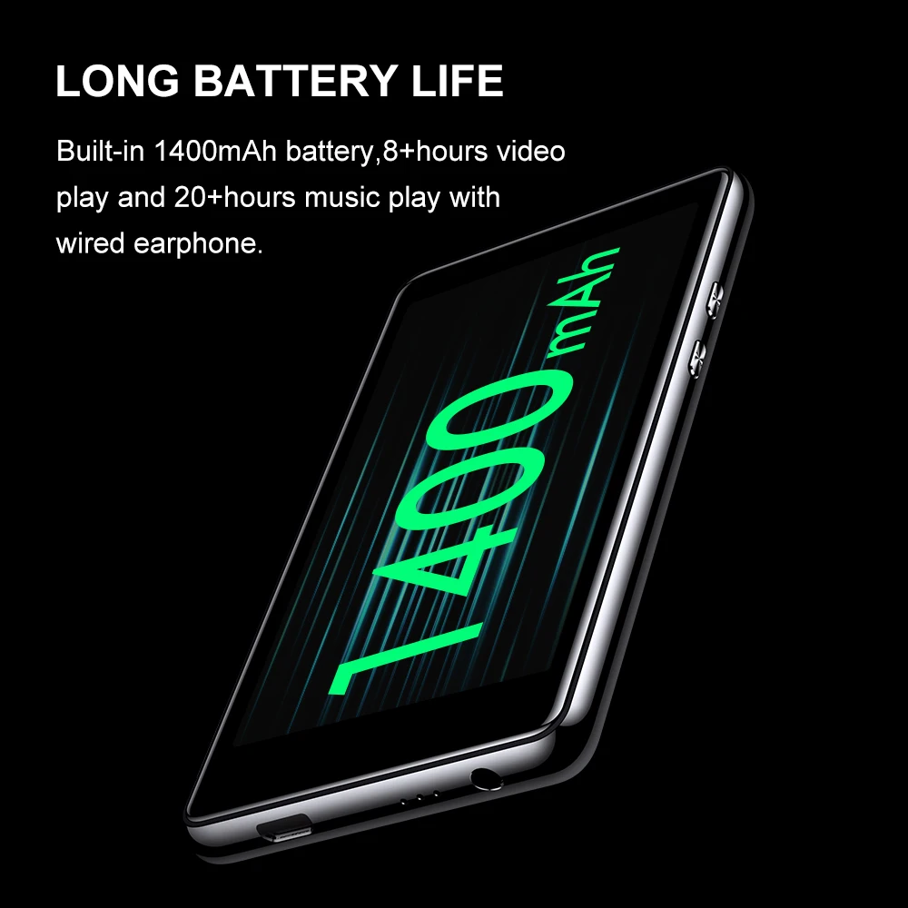 6. Воспроизведение аудио около 12 часов (выключите экран, чтобы сохранить мощность, половину громкости, MP3-128Kbps, наушники 32 Ом)