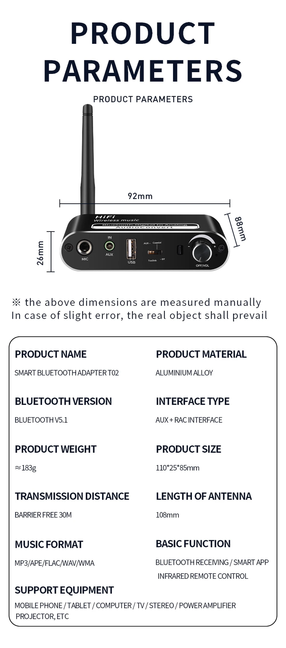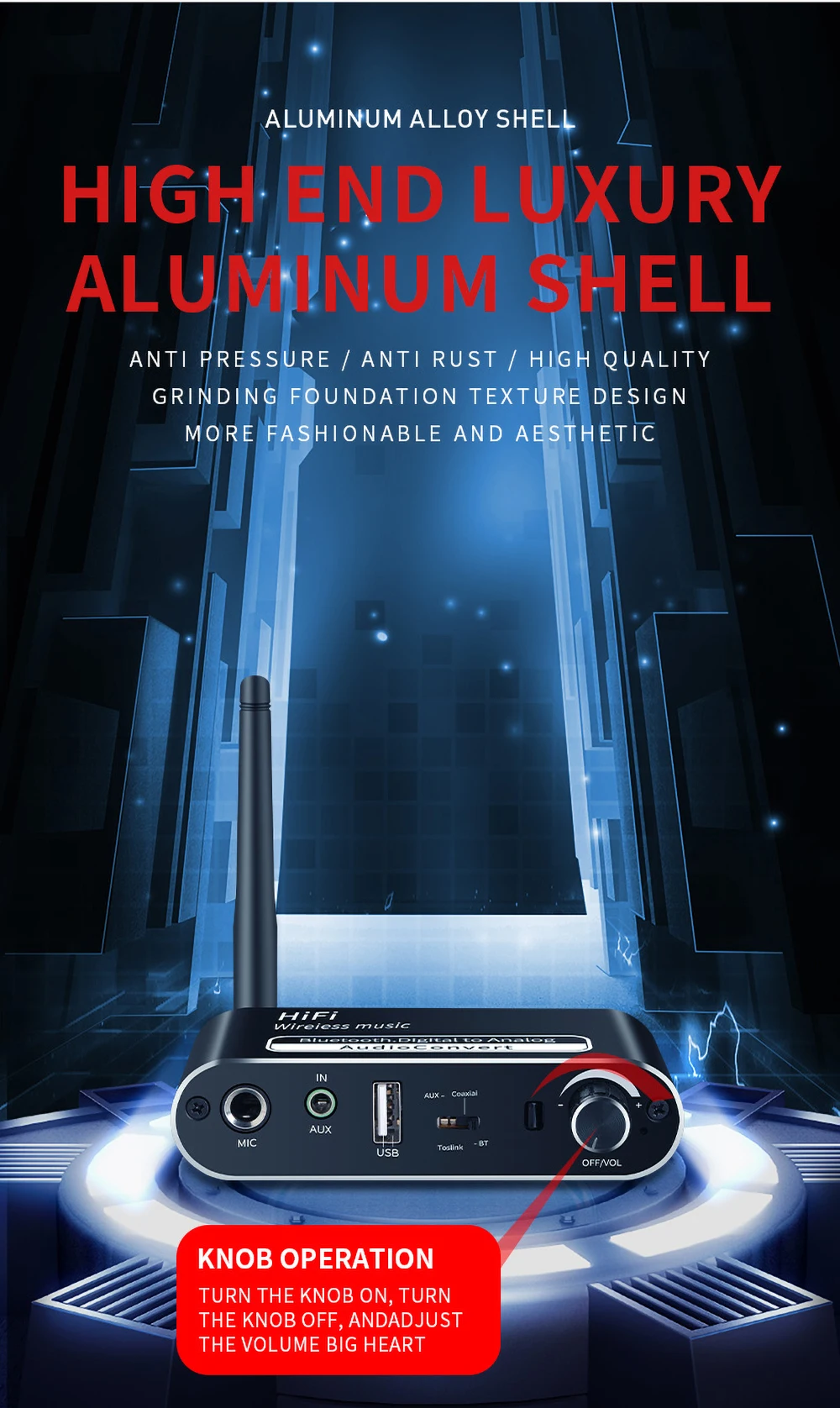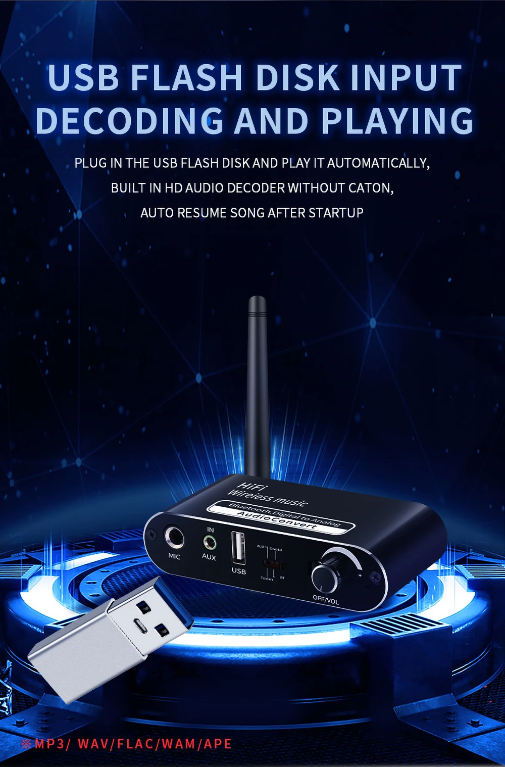 Этот продукт представляет собой адаптер аудиоприемника Bluetooth 5,1, который передает аудио высочайшего качества по беспроводной сети с телефона/планшета в любую домашнюю стереосистему. С Bluetooth,Aux,Toslink, коаксиальным, RCA, u-дисковым входом и выходом через RCA или Aux, различные интерфейсы для удовлетворения всех ежедневных аудио конверсий.