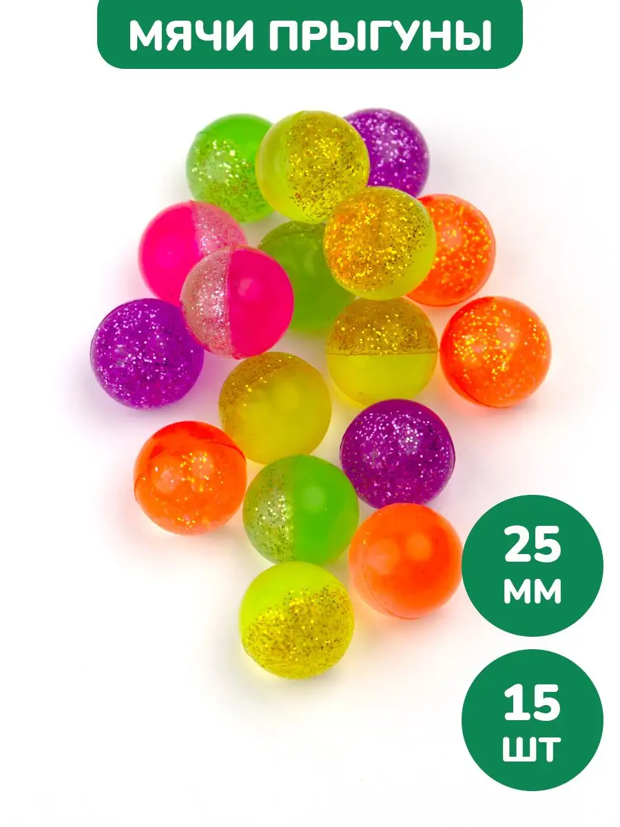 Мячи попрыгунчики 2,5 см. дискобол 15 шт.