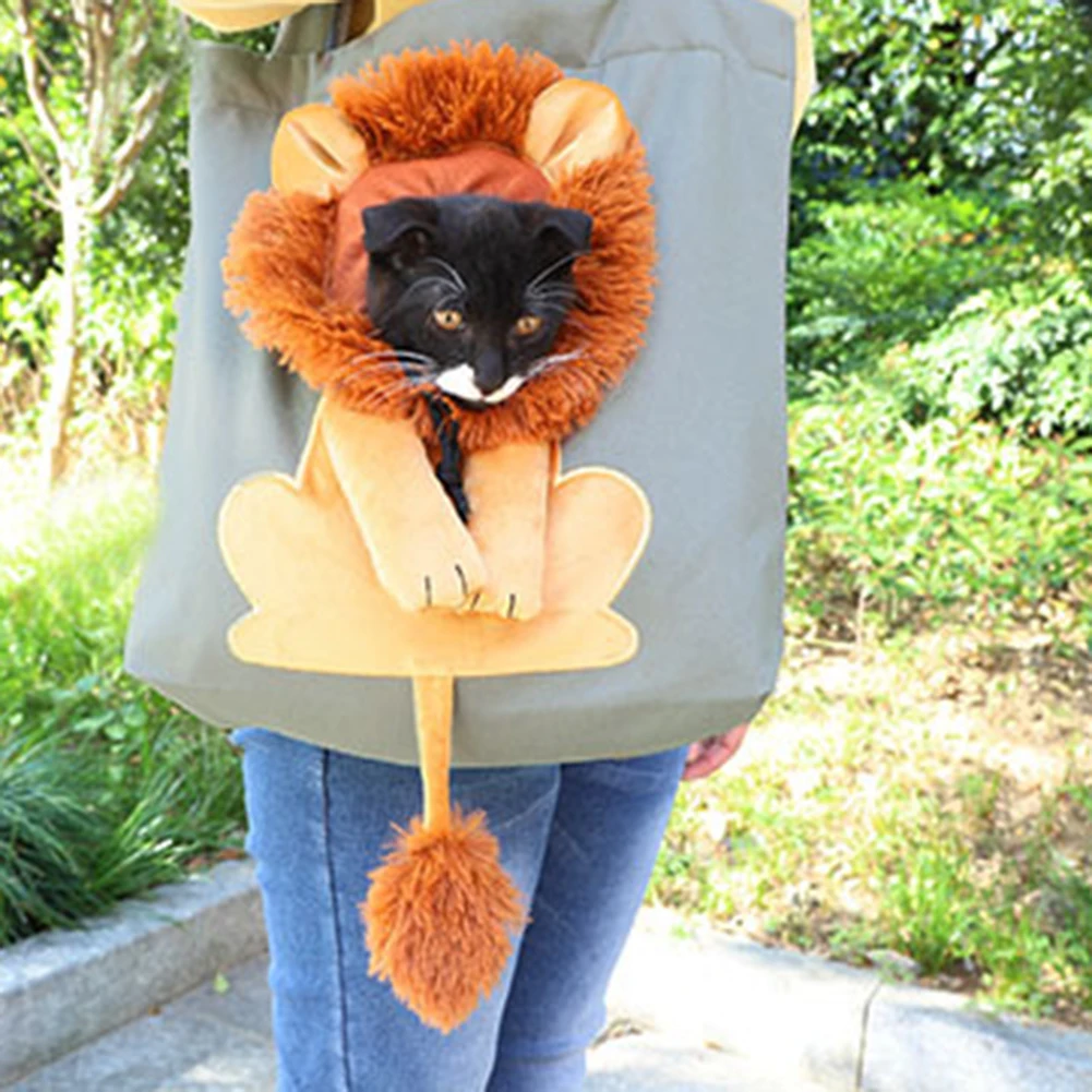 Дышащая сумка с рисунком льва Портативная Холщовая Сумка для маленьких домашних животных Большой емкости Удобная Мягкая Мода для активного отдыха с домашними животными
