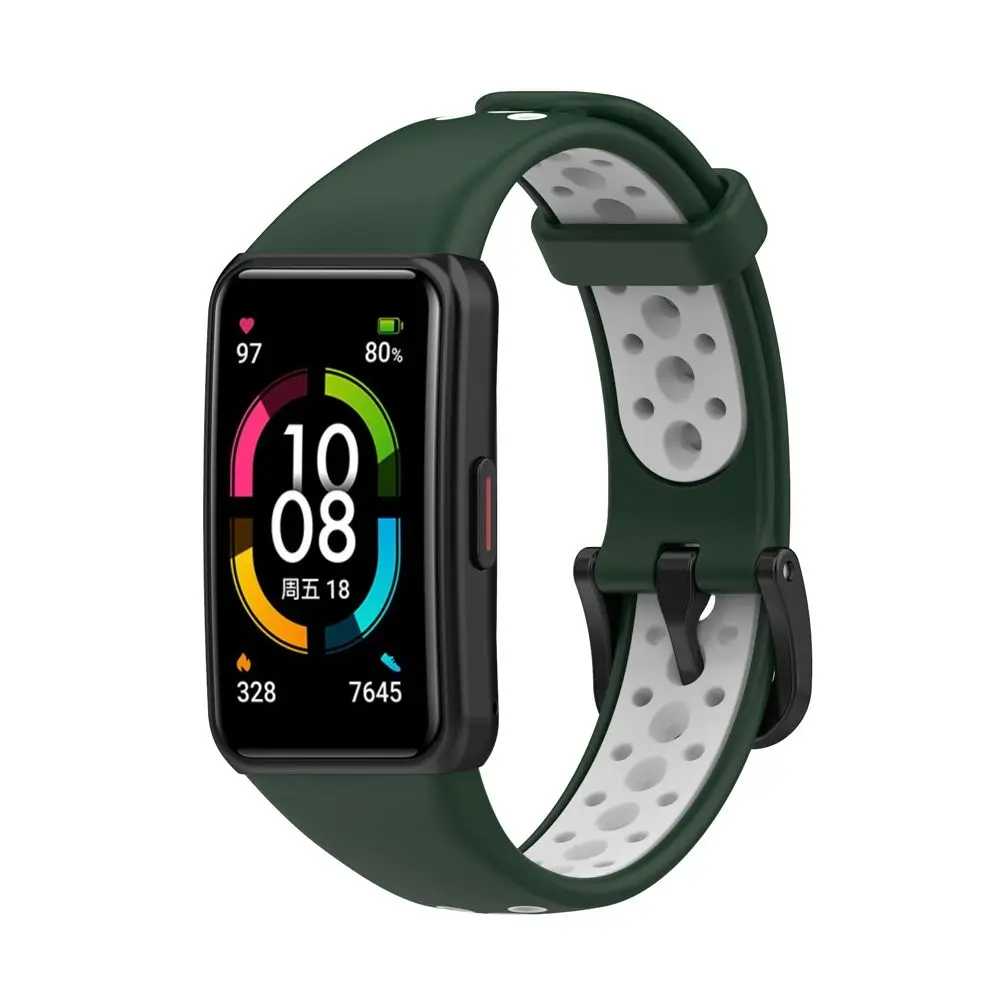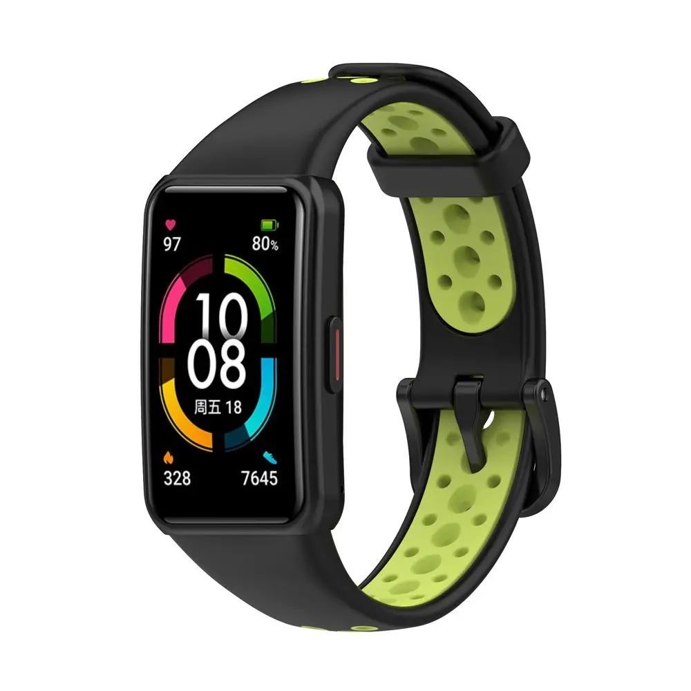 Мягкий двухцветный ремешок с пряжкой для наручных часов, силиконовый сменный ремешок для Huawei Band 6 Honor Band 6