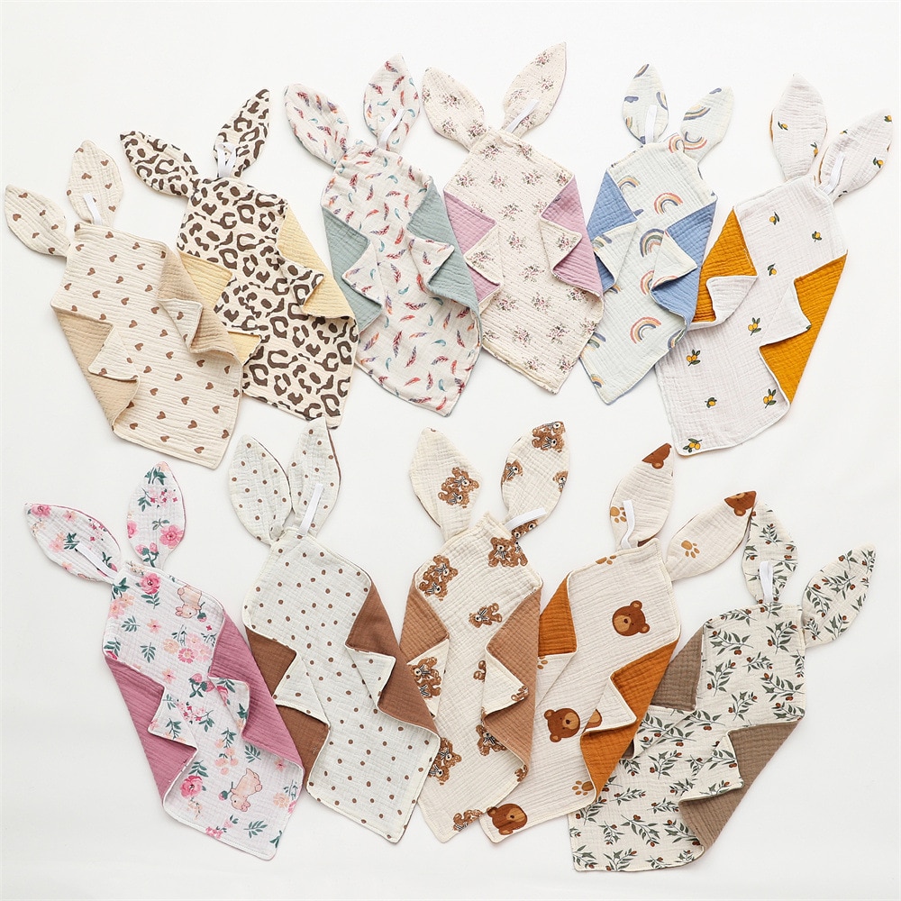 Мягкий хлопковый муслиновый детский нагрудник Мягкая кукла-кролик успокаивающее полотенце для новорожденных одеяло для безопасности детское полотенце для сна