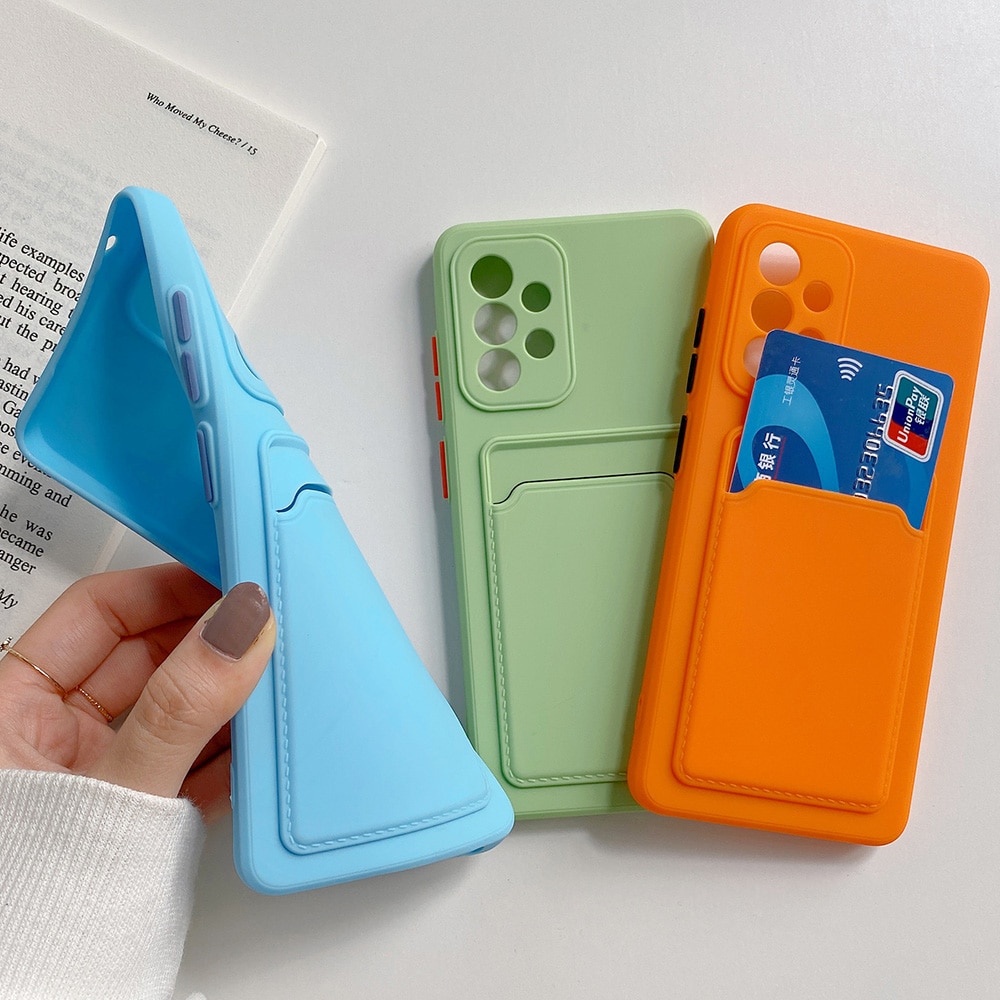 Liquid Soft Silicone Case For Samsung Galaxy A53 A73 A33 A23 A13 A12 A52 A52S A02 A82 A72 4G 5G Luxury Card Holder Wallet Cover