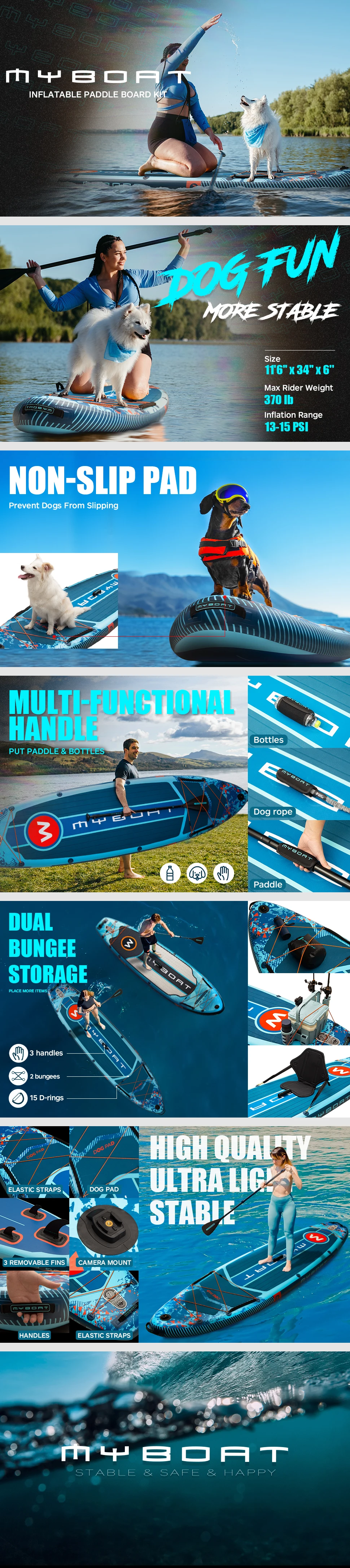 Myboat Водонепроницаемая надувная лопастная доска 11'6 ''* 34'' * 6 ''очень широкая сапборд взрослый стоячий стиль с аксессуарами SUP 2023new