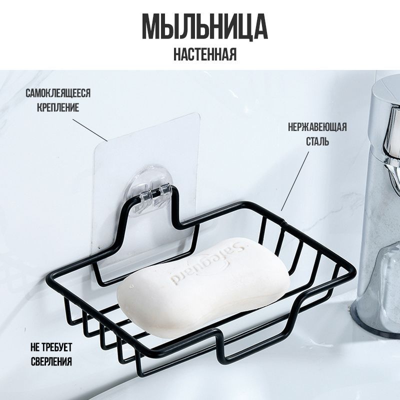 СтильноКлейкое крепление мыльницы легко и прочно приклеивается к поверхности, не портит стену. Так же легко демонтируется, не оставляя следов. Металлическая мыльница для ванной выдерживает нагрузку более 2-х кг. Такую подставку для мыла удобно использовать как у раковины, так и в самой ванной или душе. Она не боится влаги, не отклеится и не будет ржаветь. Размеры 14 см х 9,5 см.