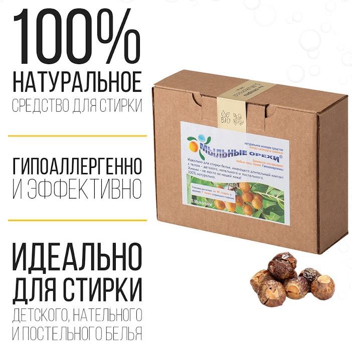Предлагаем природную альтернативу синтетическим моющим средствам - Натуральное моющее средство Мыльные орехи ®. Средство представляет из себя круглые, диаметром 1,5-2,5 см, желто-коричневые сухие плоды сапиндуса (мыльного дерева), произрастающего в тропиках и субтропиках. В кожуре этих плодов содержатся поверхностно-активные вещества (ПАВ) растительного происхождения.