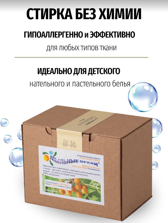 Основные преимущества натурального моющего средства Мыльные орехи ® Mukorossi на основе плодов сапиндуса:- это 100% натуральный экологически чистый продукт (сухофрукт), полностью разлагается в окружающей среде, не загрязняет природу.